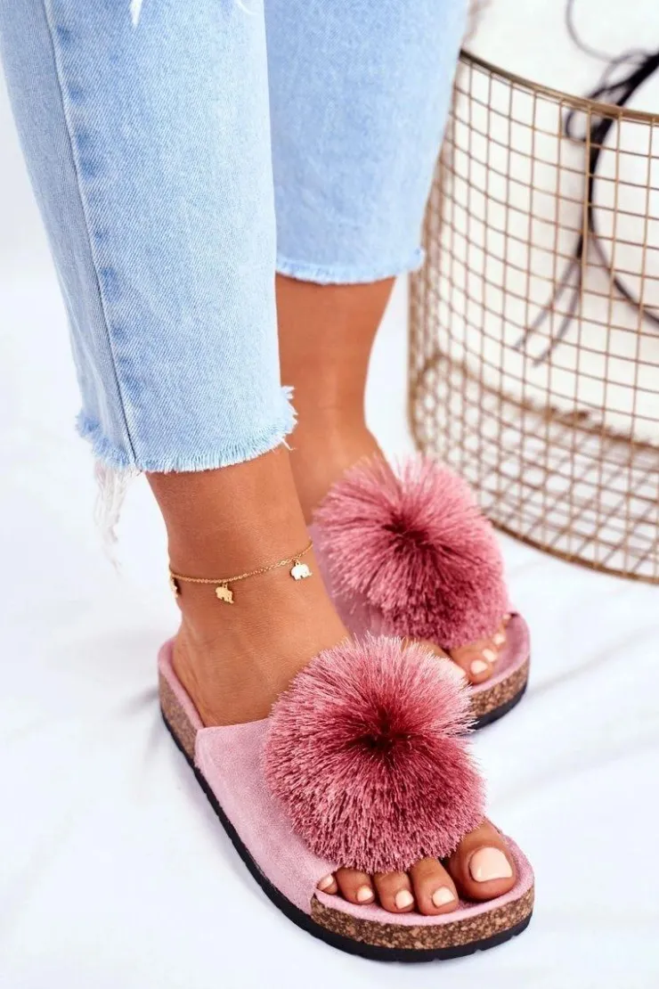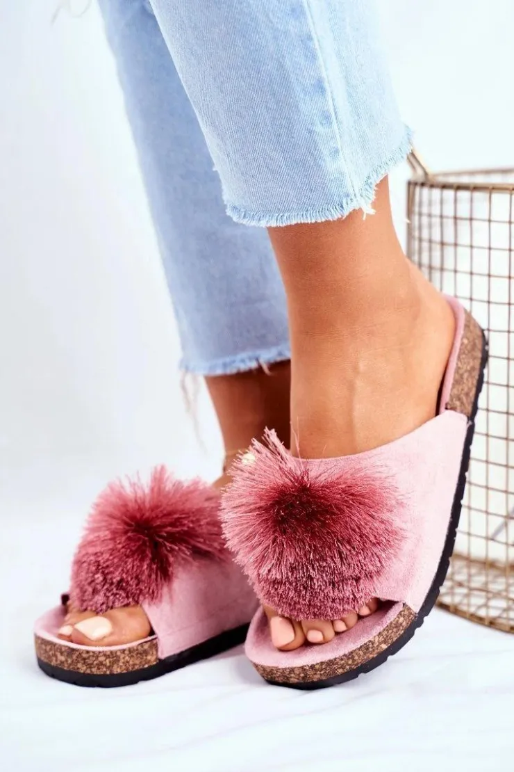 Boto Klapki Korkowe|Klapki Damskie Klasyczne*Damskie Klapki Na Korku z Pomponem Różowe Galaxo