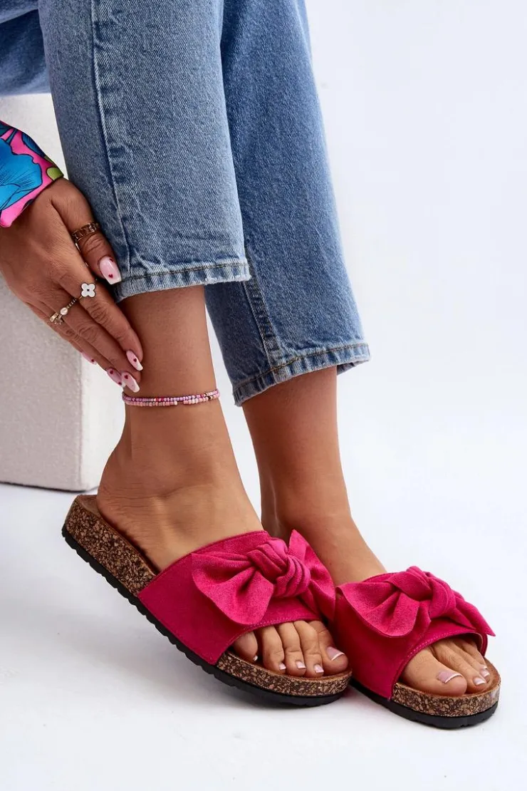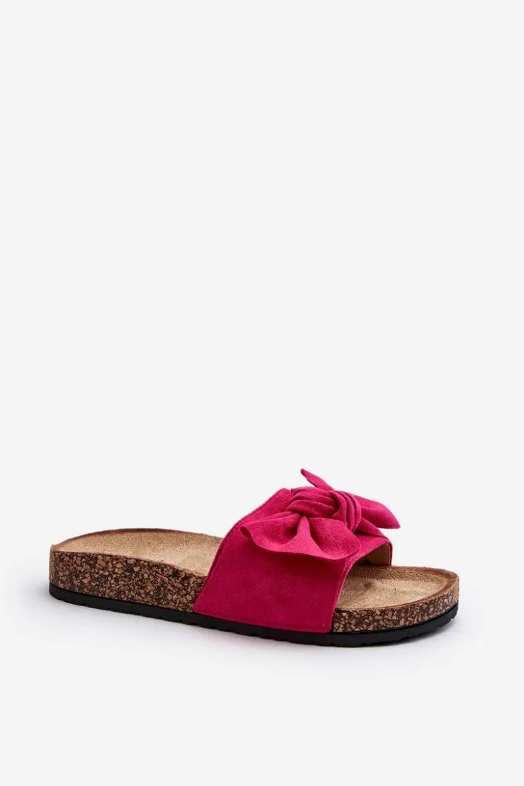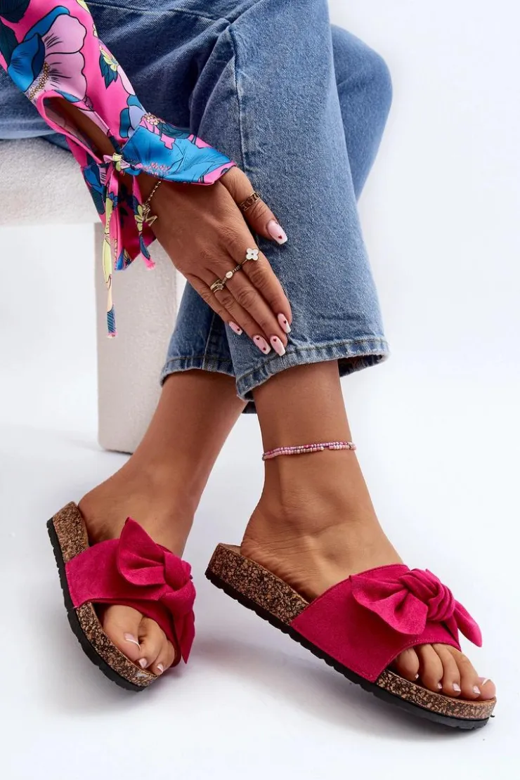 Piękne klapki na korkowej podeszwie. Buty posiadają profilowaną wkładkę, która zagwarantuje maksimum komfortu. Cholewka wykonana jest z miłego w dotyku eko zamszu. Z przodu ozdobna kokarda. Idealne na co dzień! Model ten dostępny jest w różnych kolorach. Koniecznie powinnaś je mieć! Przy wyborze rozmiaru prosimy sugerować się tabelą rozmiarów.