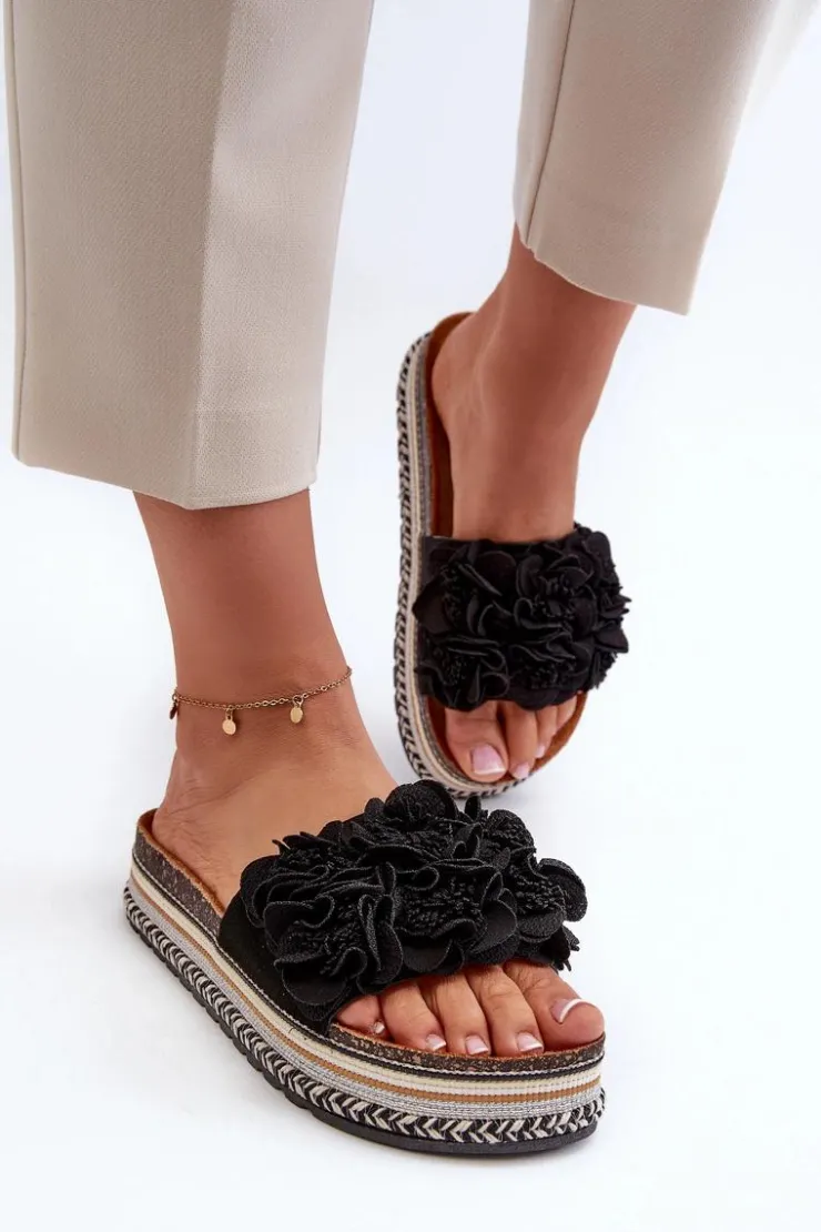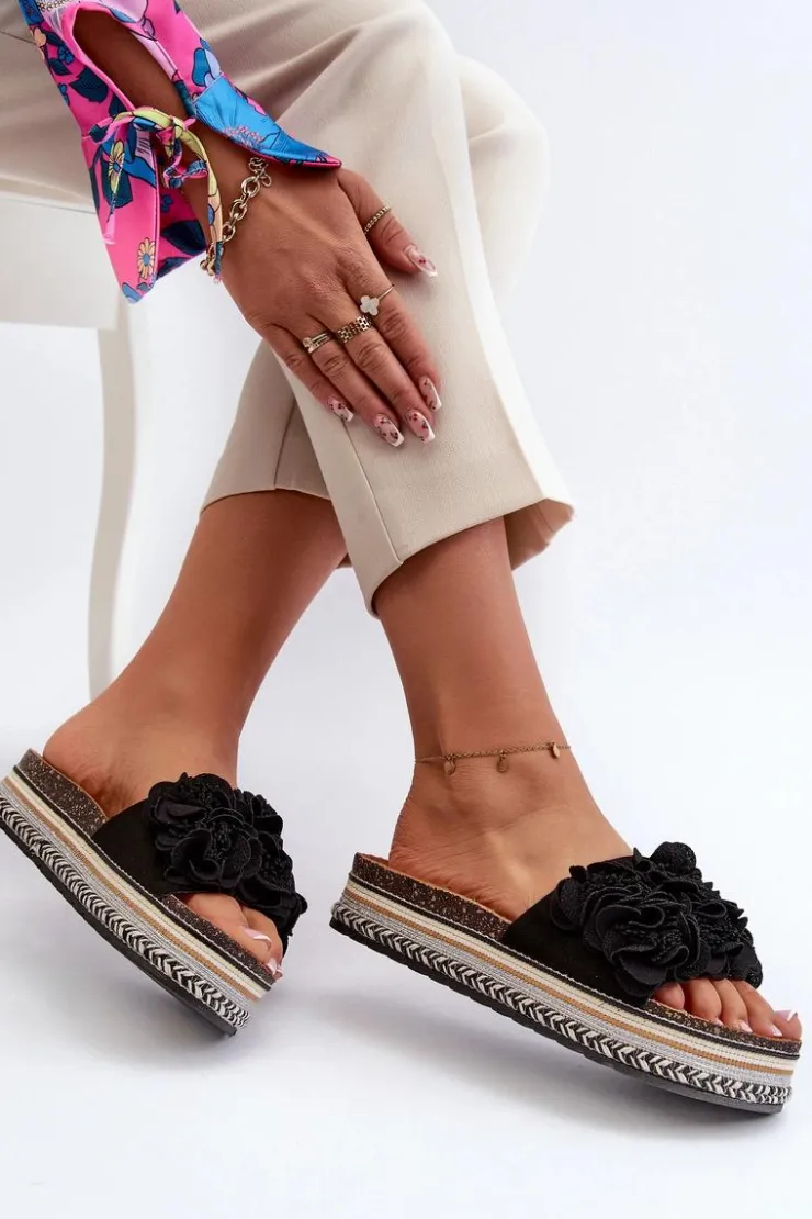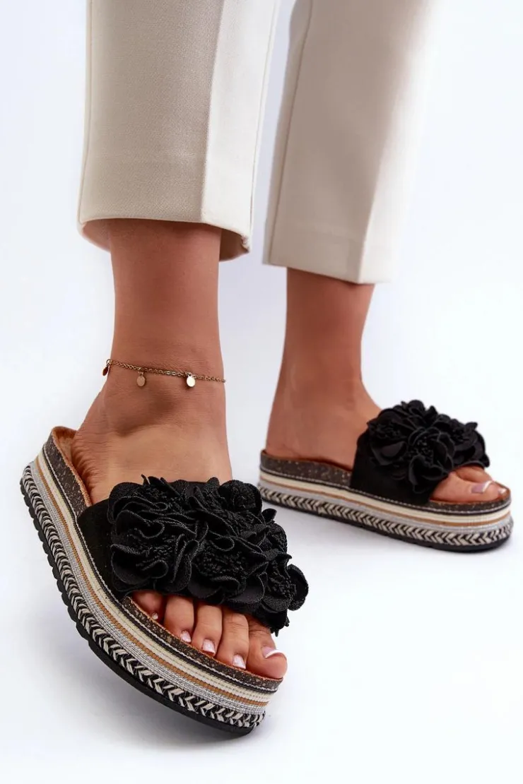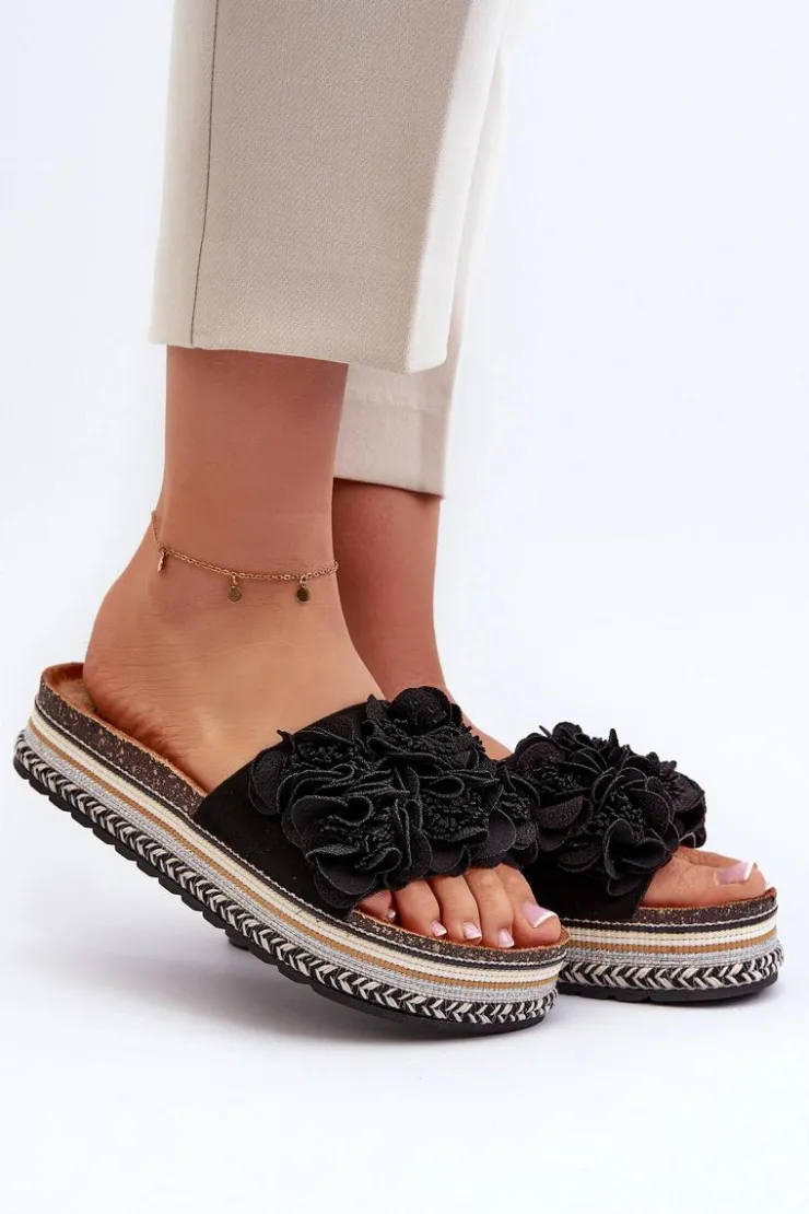 Damskie klapki na masywnej platformie to idealny wybór dla kobiet ceniących sobie modny wygląd i wygodę. Ten stylowy model przyciąga wzrok nie tylko swoją masywną platformą, ale również uroczymi kwiatkami, które zdobią przód obuwia. Idealne na letnie dni, te klapki są doskonałym dodatkiem do sukienek, spódnic, a także jeansów i szortów. Przy wyborze rozmiaru prosimy sugerować się tabelą rozmiarów.