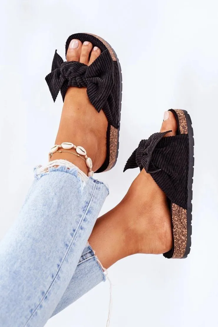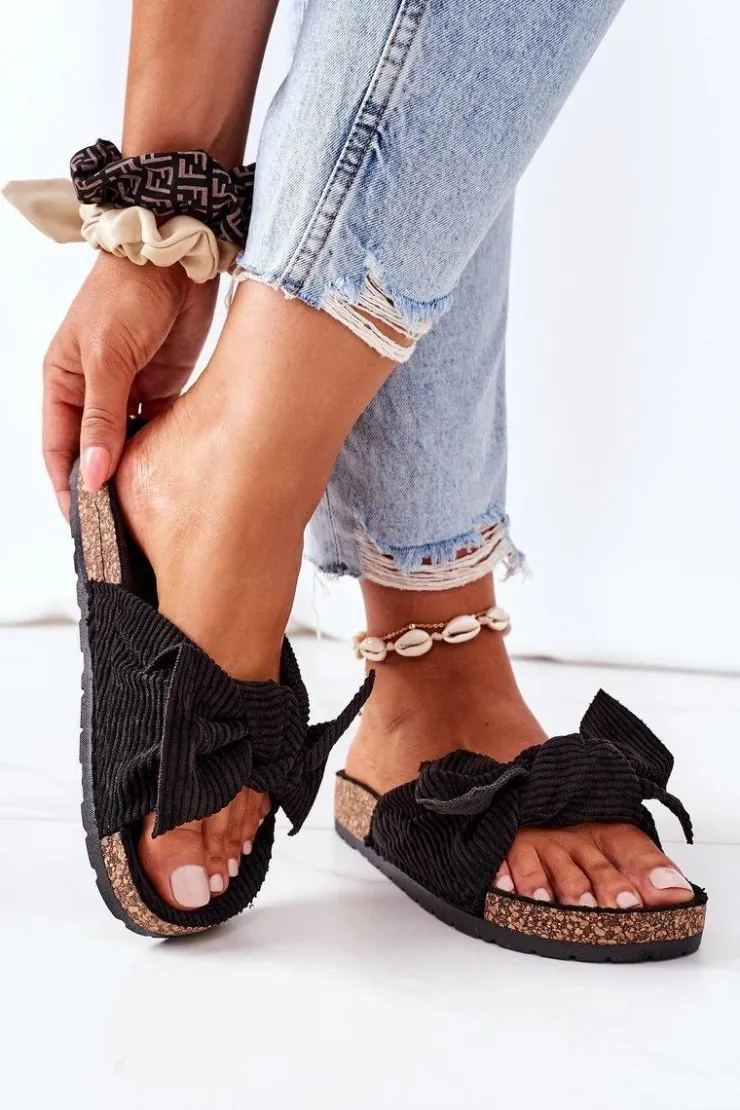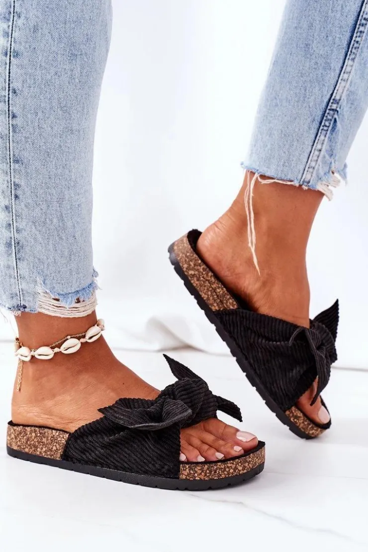 Boto Klapki Korkowe|Klapki Damskie Klasyczne*Sztruksowe Klapki Na Korku Czarne Summertime