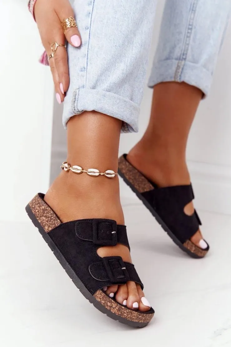 Boto Klapki Korkowe|Klapki Damskie Klasyczne*Zamszowe Klapki Na Korkowej Podeszwie Czarne Jennifer