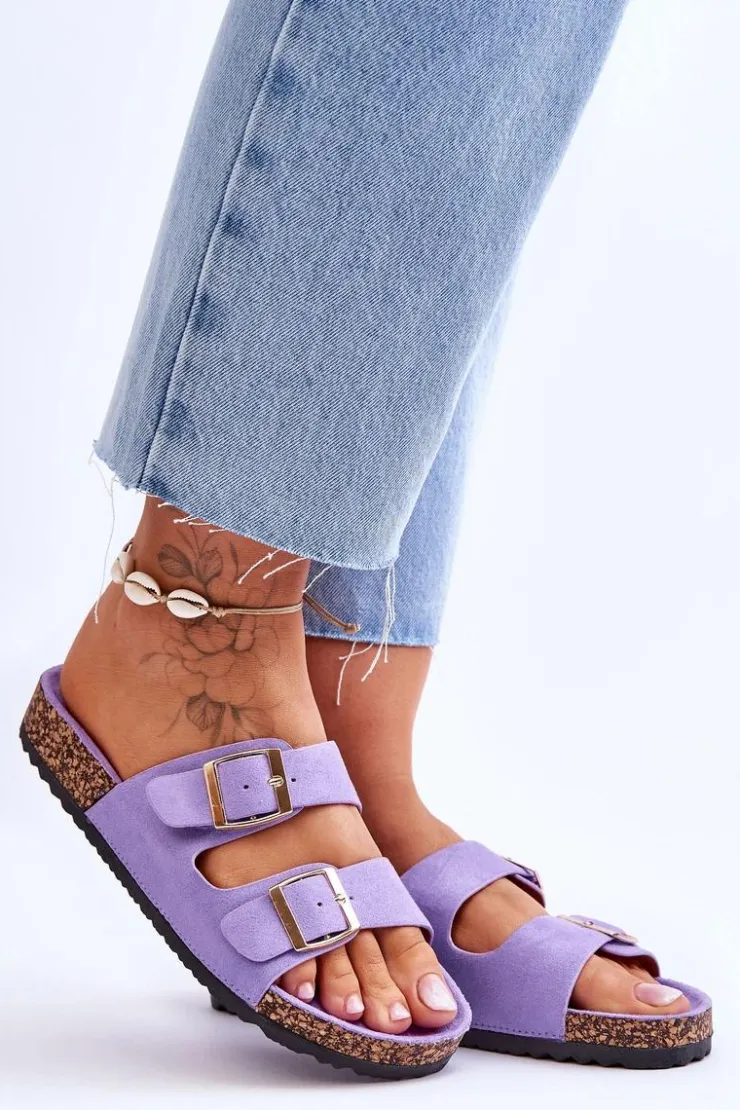 Damskie klapki zostały wykonane z miłego w dotyku eko zamszu. Posiadają ozdobne klamry z regulowanymi paskami. Model ten został osadzony na korkowej platformie. Idealne obuwie na letni sezon. Klapki te posiadają profilowaną, wygodną wkładkę. Koniecznie powinnaś je mieć! Przy wyborze rozmiaru prosimy sugerować się tabelą rozmiarów.