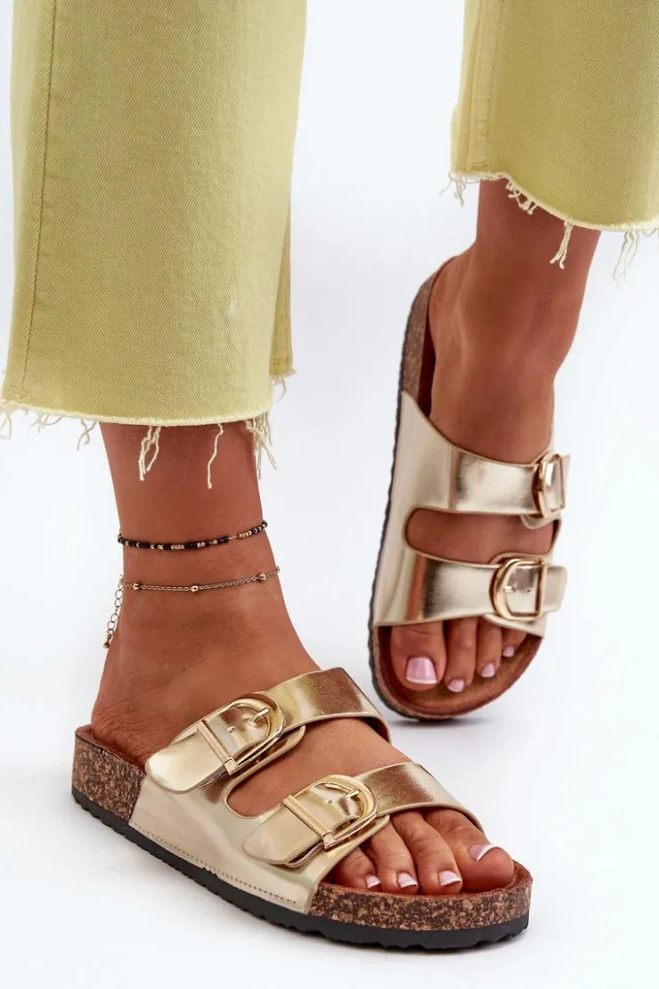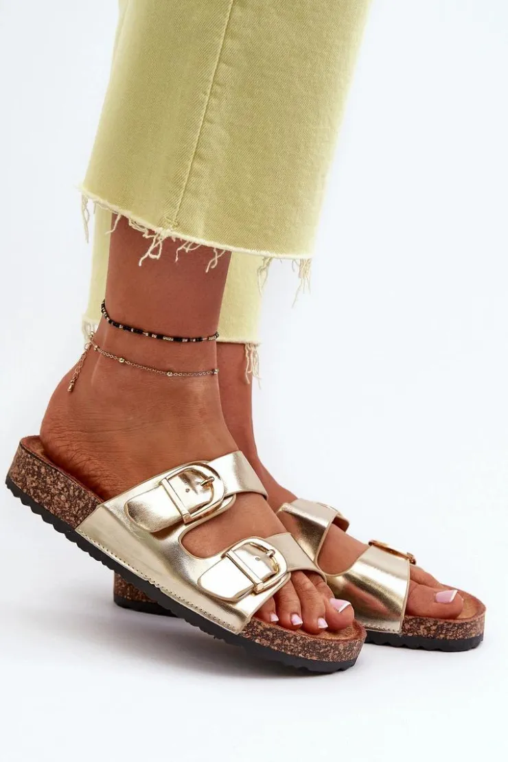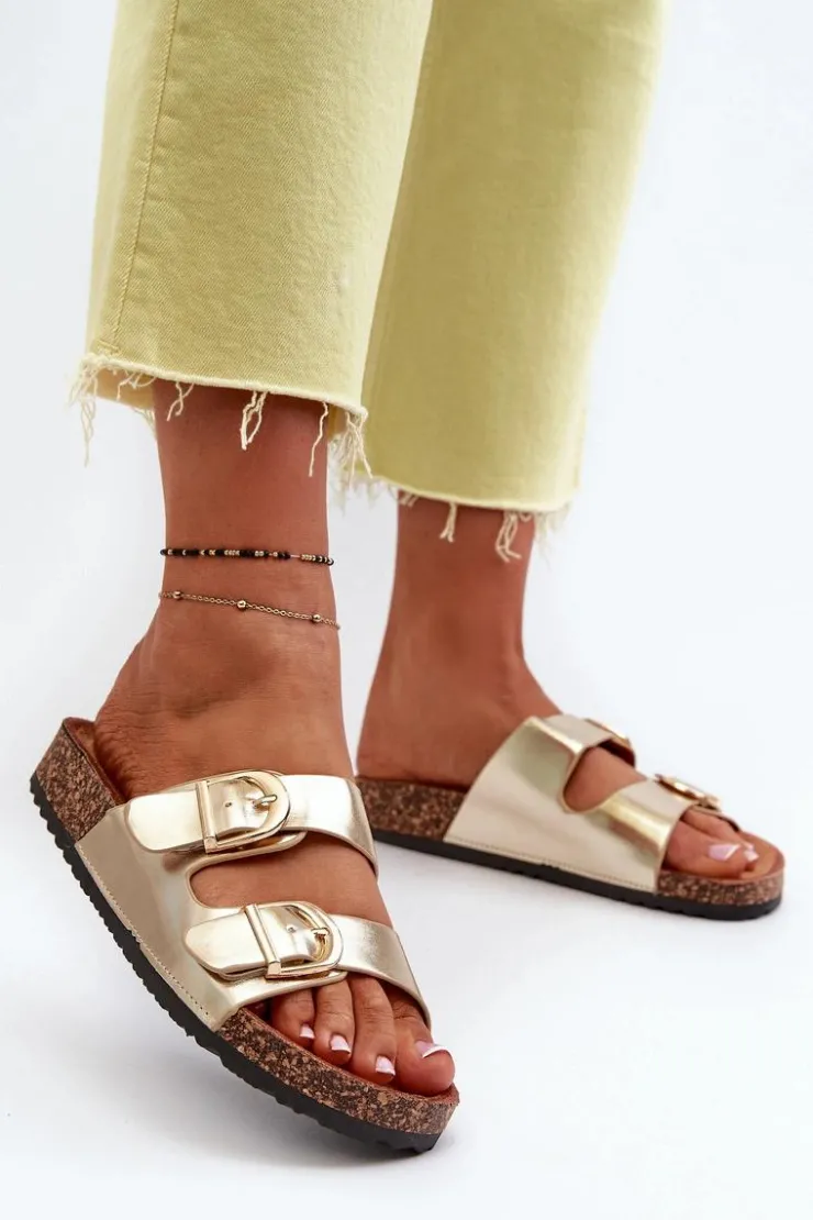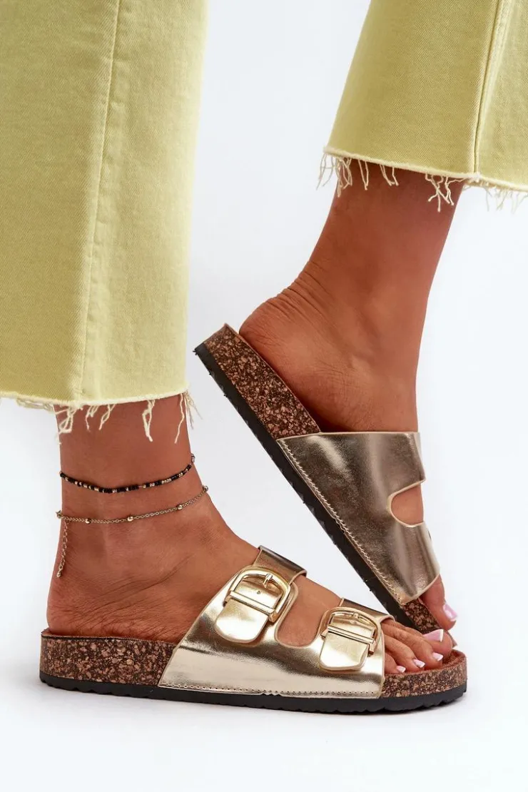 Damskie klapki zostały wykonane z eko skóry. Posiadają ozdobne klamry z regulowanymi paskami. Model ten został osadzony na korkowej platformie. Idealne obuwie na letni sezon. Klapki te posiadają profilowaną, wygodną wkładkę. Koniecznie powinnaś je mieć! Przy wyborze rozmiaru prosimy sugerować się tabelą rozmiarów.