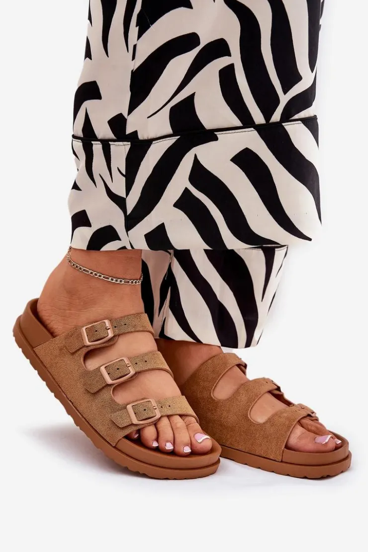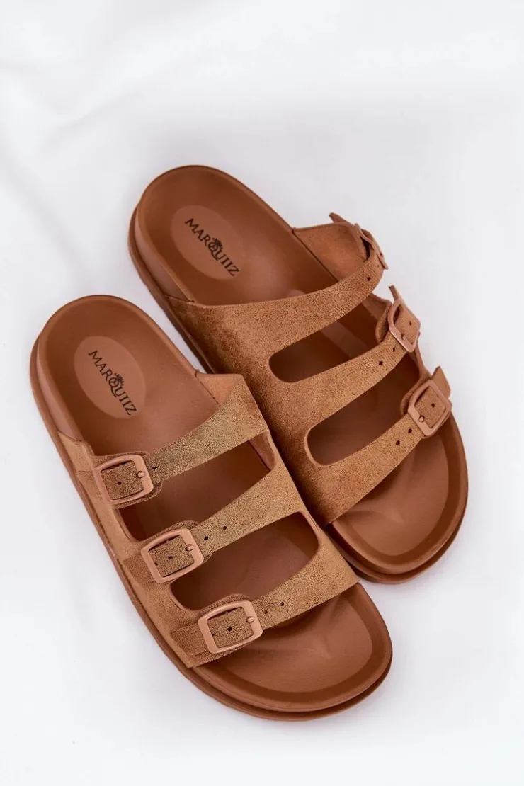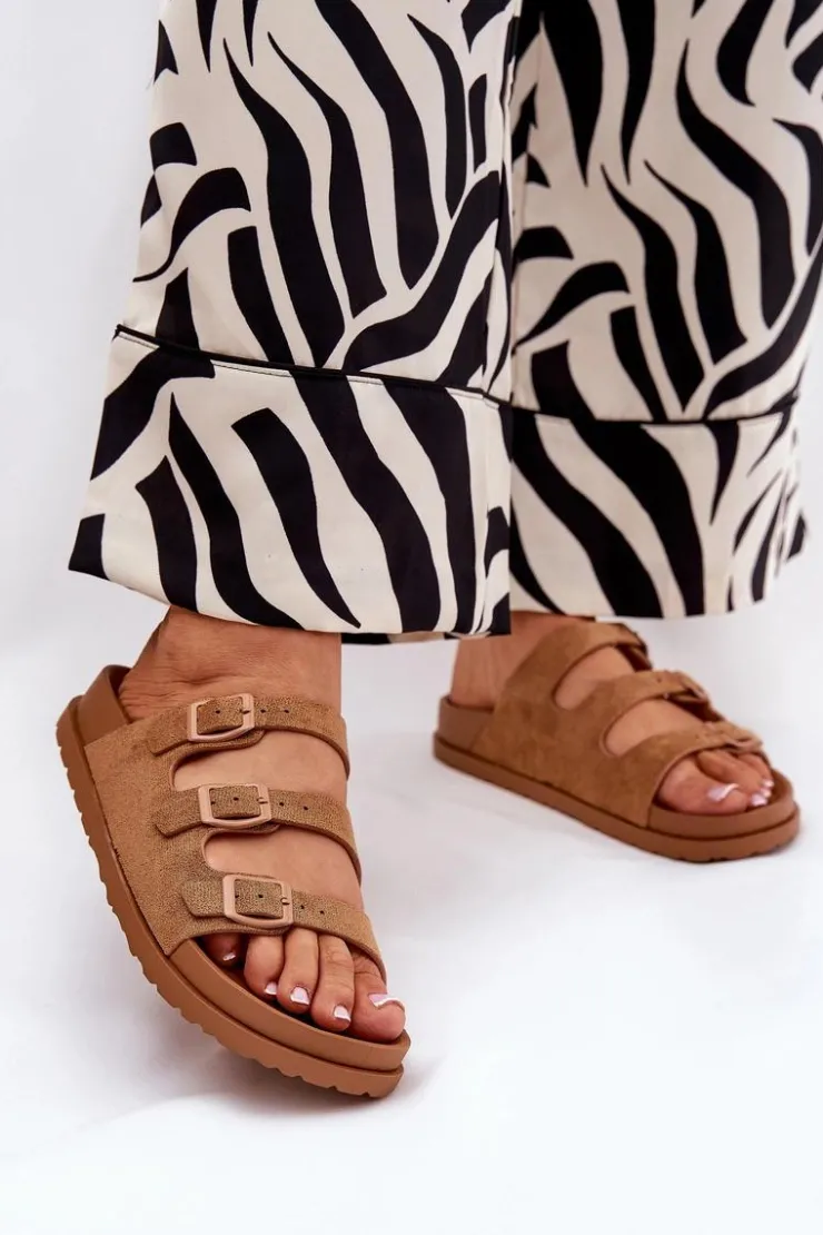 Boto Klapki Korkowe|Klapki Na Platformie*Klapki Damskie Z Paskami I Klamrami Camel Uliri Brązowy