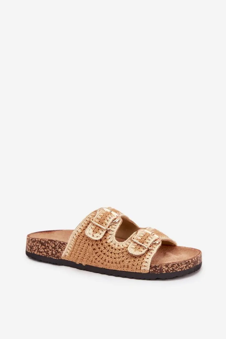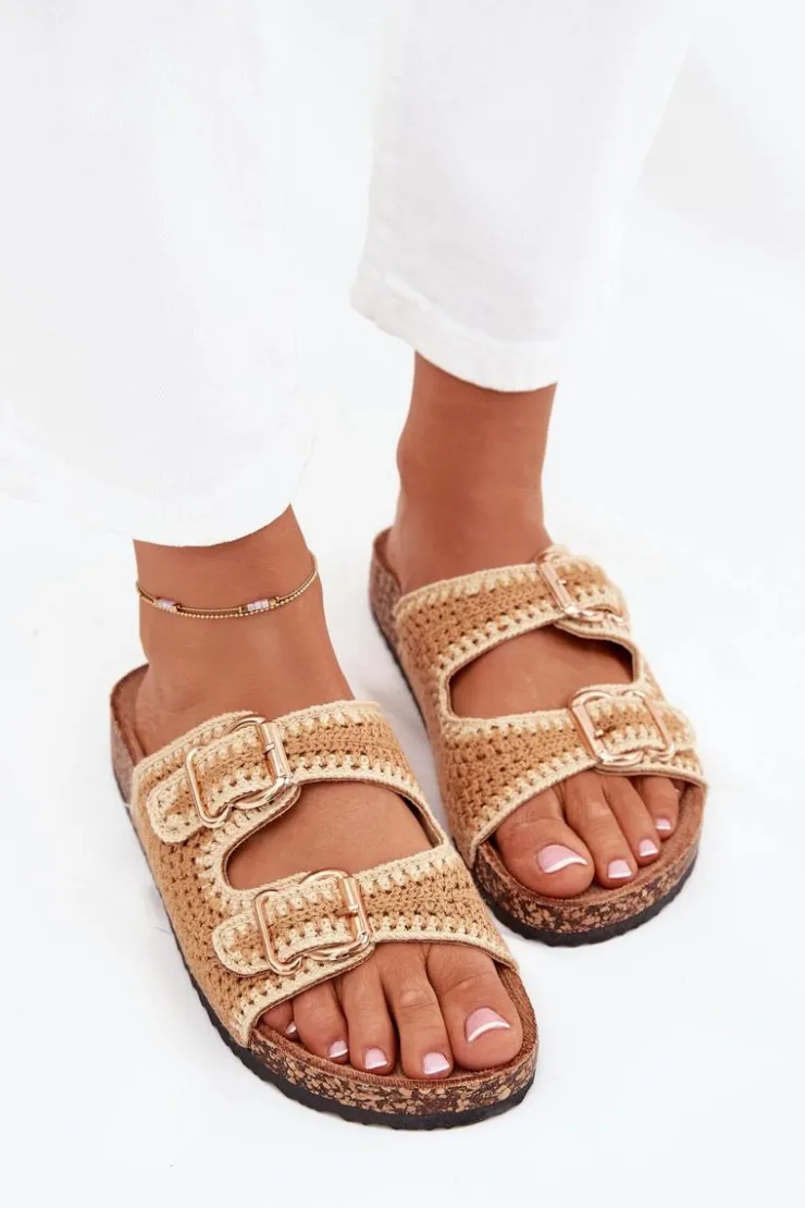 Szydełkowe klapki damskie na korkowej platformie to wyjątkowa propozycja na ciepłe dni. Dzięki profilowanej wkładce z eko zamszu zapewniają komfort i wygodę przez cały dzień. Dwie złote klamry dodają im eleganckiego charakteru. Idealne do letnich stylizacji, te klapki będą doskonałym wyborem do sukienek, spódnic i spodni. Przy wyborze rozmiaru prosimy sugerować się tabelą rozmiarów.