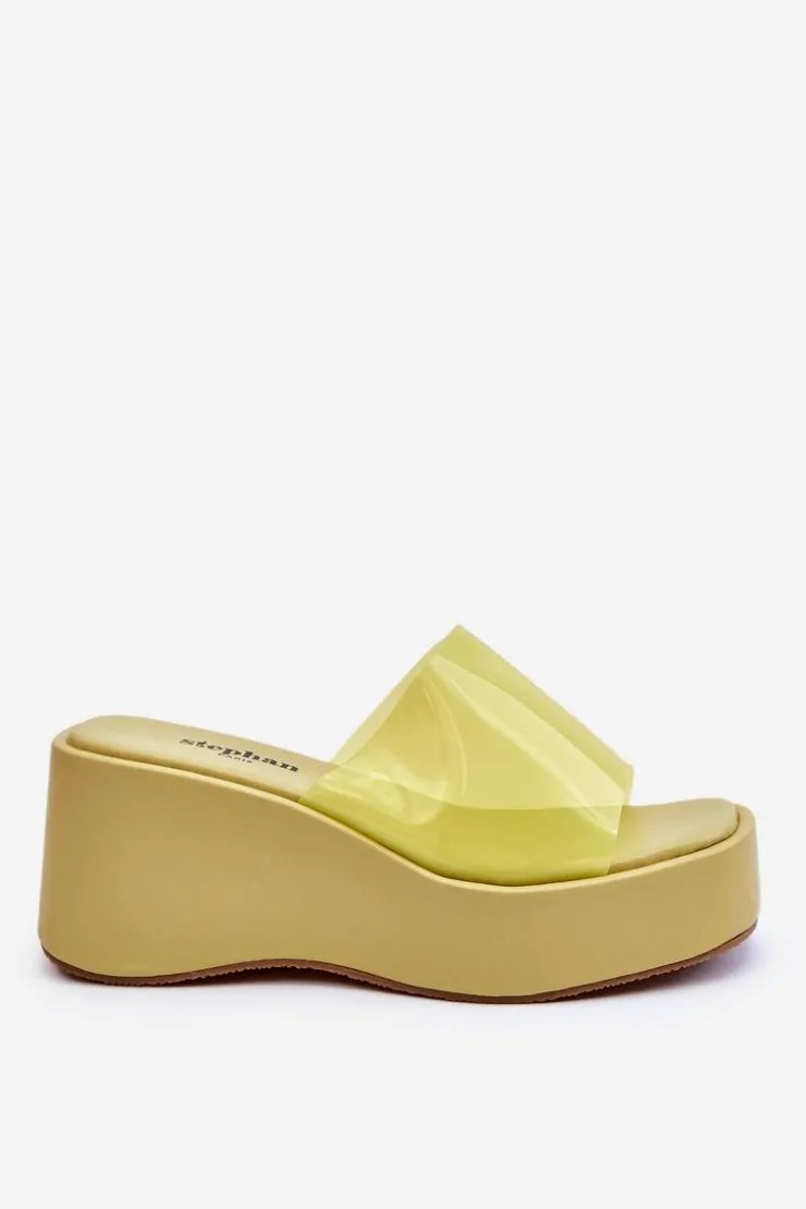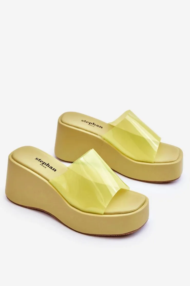 Wyjątkowe, damskie klapki na masywnej platformie i koturnie. Wierzch został wykonany z transparentnego tworzywa sztucznego. Miękka wkładka zapewni wygodne użytkowanie obuwia. Model klasyczny, wsuwany. Z tymi klapkami na pewno stworzysz wiele ciekawych, letnich stylizacji! Przy wyborze rozmiaru prosimy sugerować się tabelą rozmiarów.