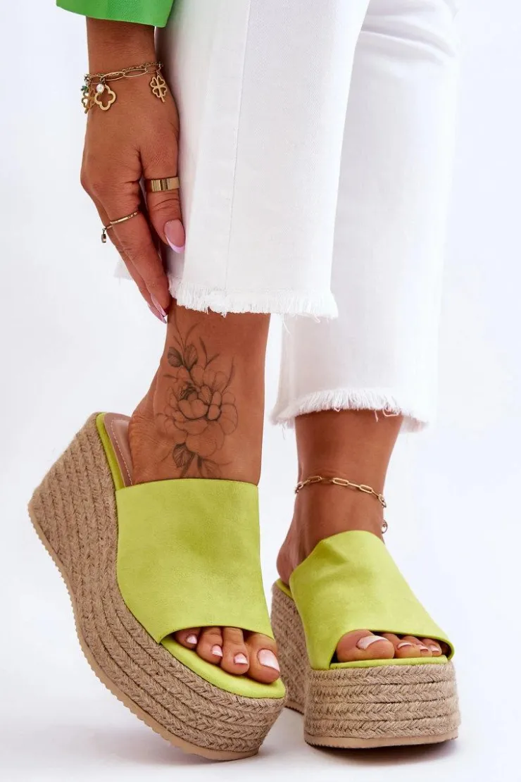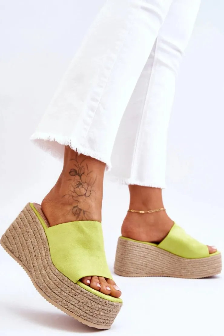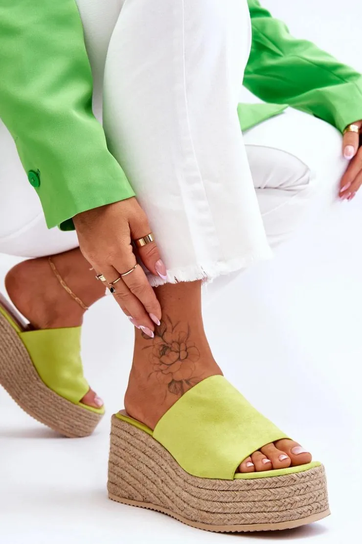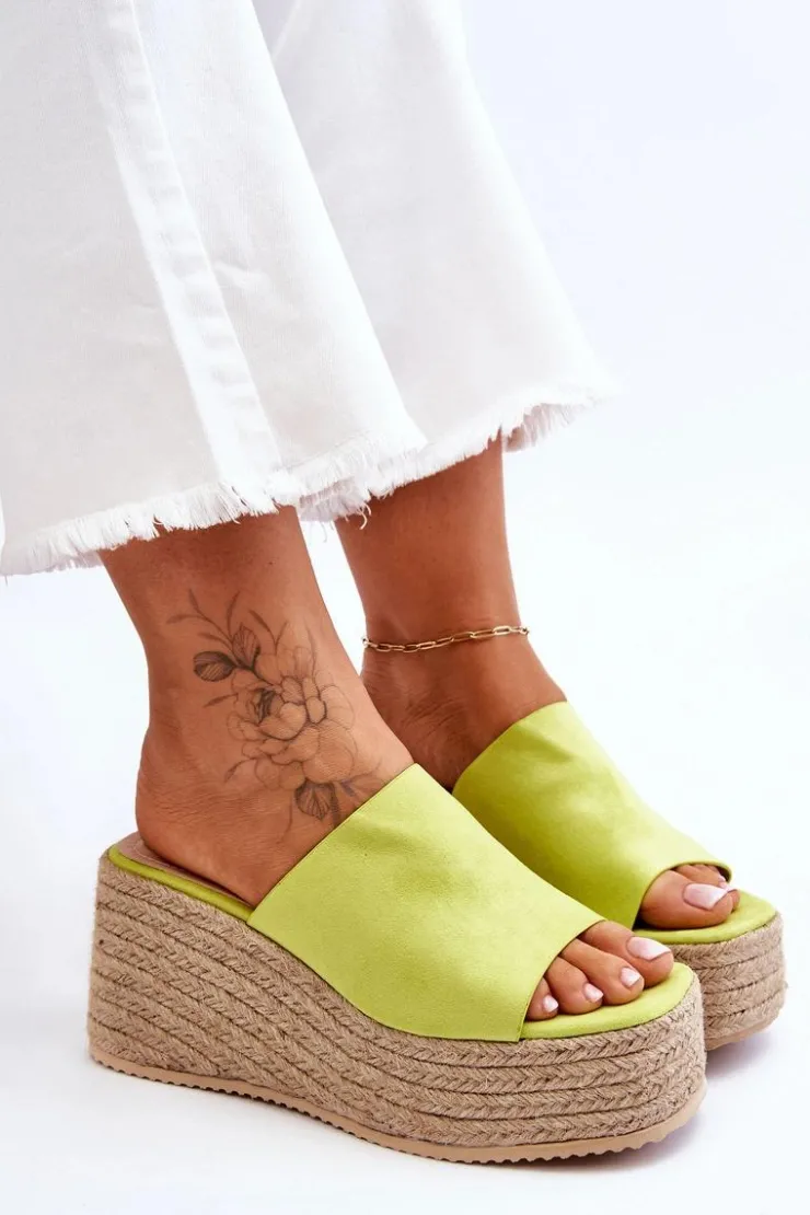 Klasyczne, damskie klapki zostały osadzone na masywnej platformie i koturnie, które dodatkowo zostały ozdobione jutowymi, plecionymi warkoczami. Wykonane z wierzchu z miłego w dotyku eko zamszu. Miękka wkładka została wykonana z eko skóry. Model klasyczny, wsuwany. Te klapki to świetny wybór na letnie, upalne dni! Przy wyborze rozmiaru prosimy sugerować się tabelą rozmiarów.