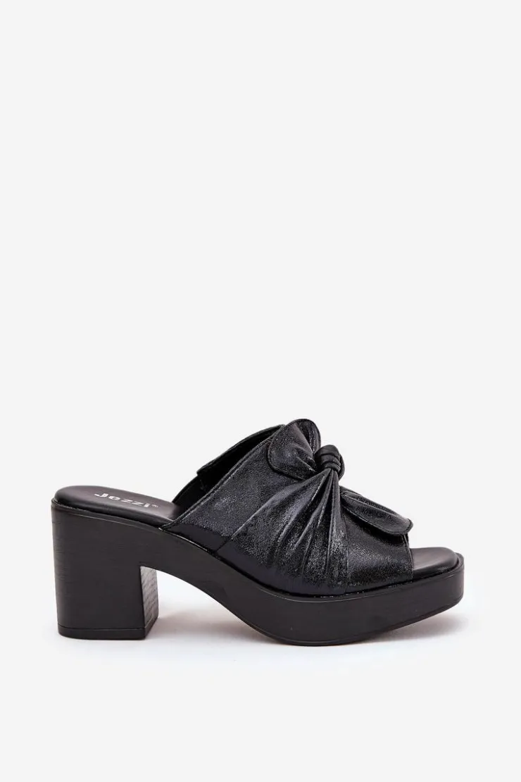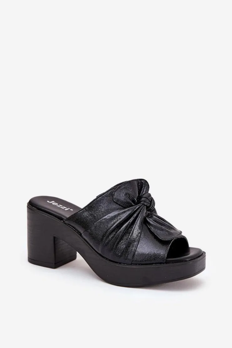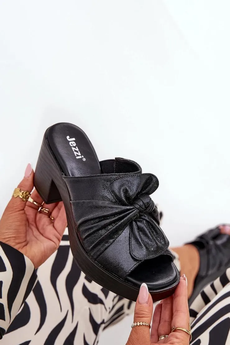 Damskie klapki marki Jezzi, wykonane z ekologicznej skóry, oferują elegancję połączoną z komfortem. Charakteryzują się masywnym słupkowym obcasem. Przód klapek zdobi wiązany materiał. Model ten to świetny wybór dla kobiet, które szukają połączenia kobiecego stylu i nowoczesnego wyglądu. Idealne zarówno do codziennych stylizacji, jak i na wyjątkowe okazje. Przy wyborze rozmiaru prosimy sugerować się tabelą rozmiarów.