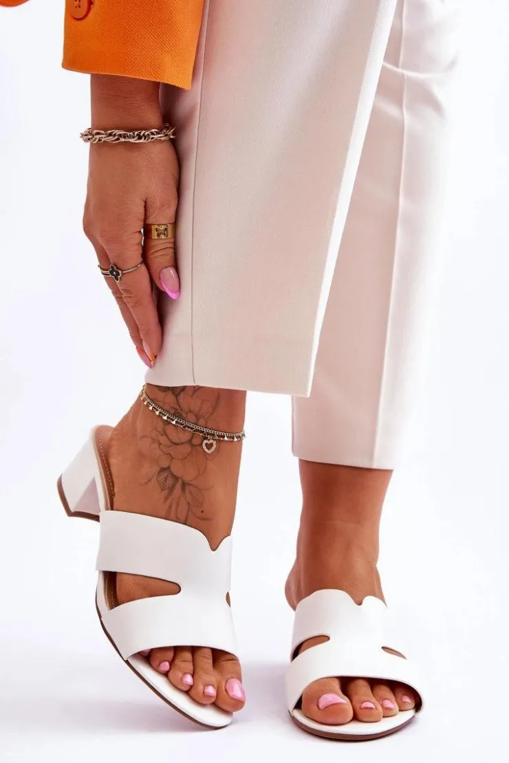 Boto Klapki Na Obcasie|Klapki Damskie Klasyczne*Klasyczne Skórzane Klapki Na Niskim Obcasie Białe Miley