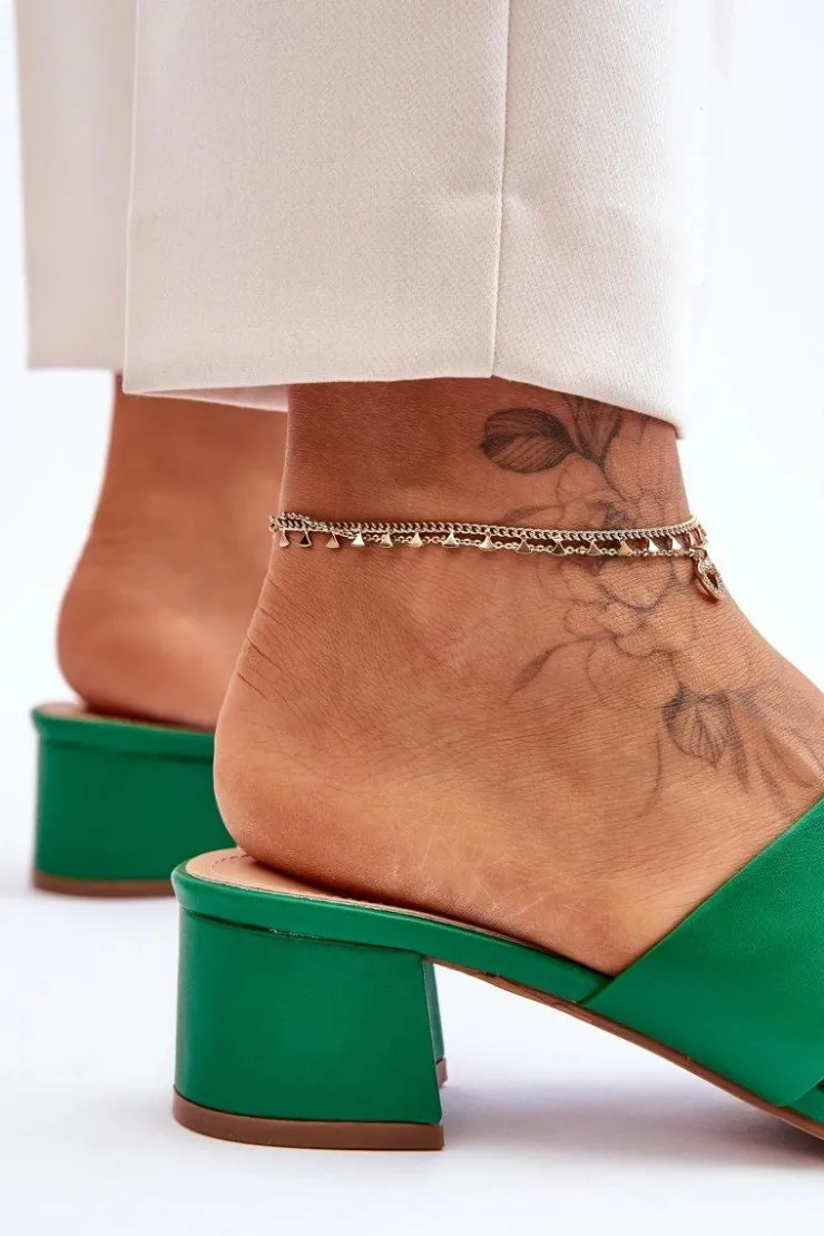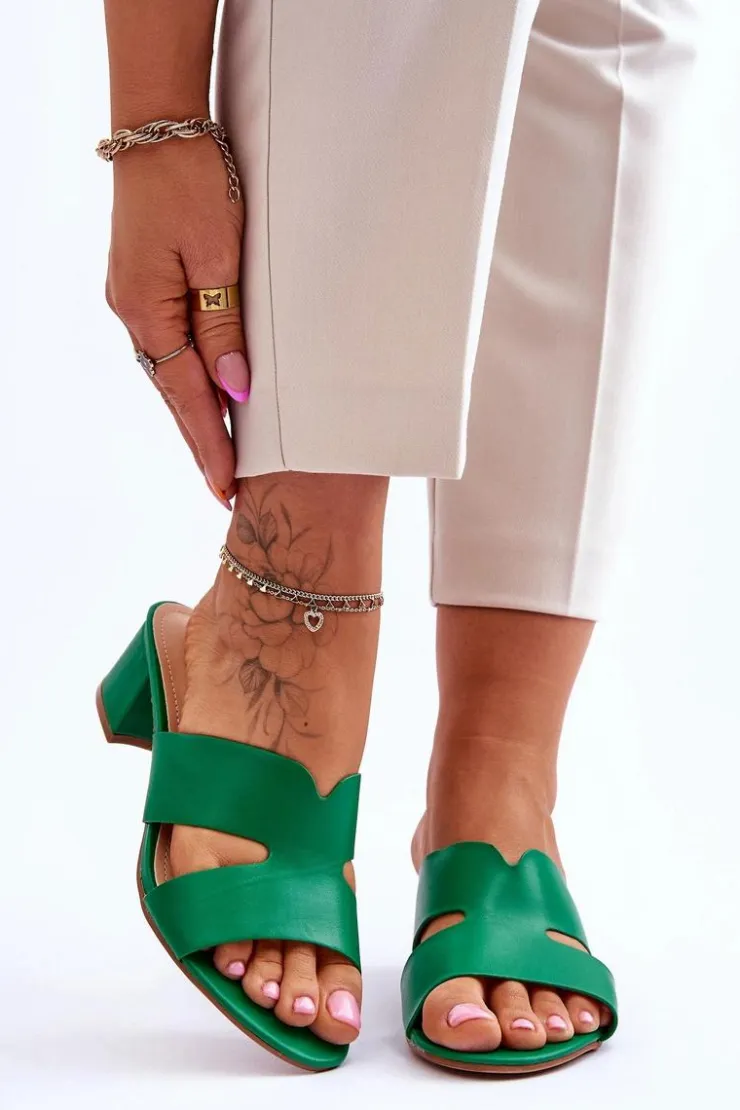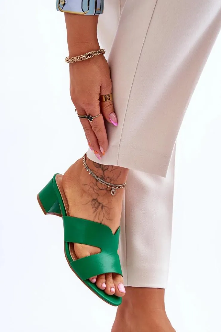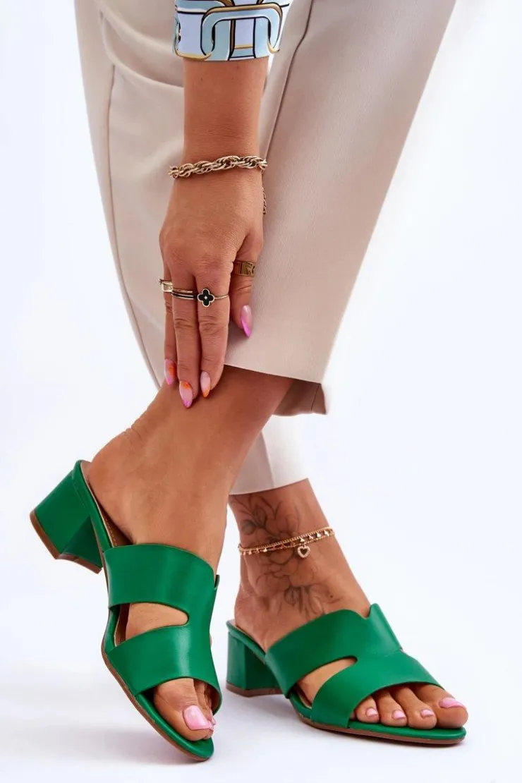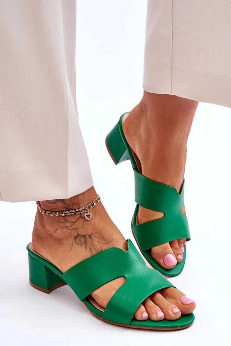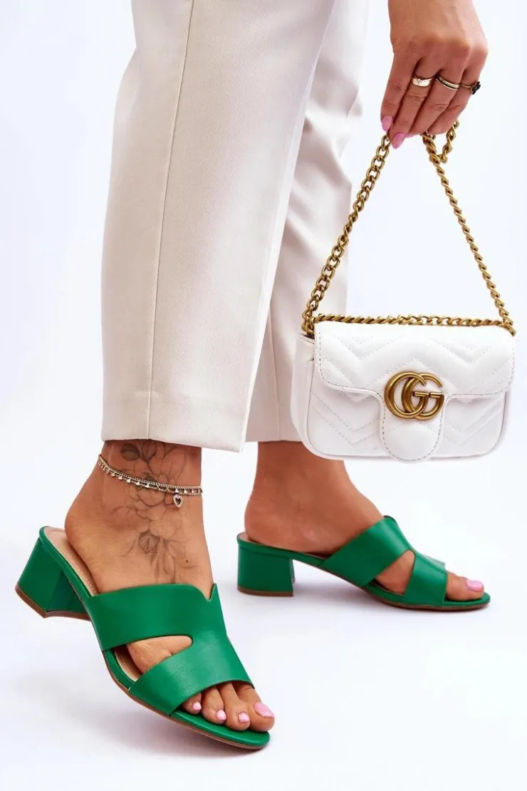 Boto Klapki Na Obcasie|Klapki Damskie Klasyczne*Klasyczne Skórzane Klapki Na Niskim Obcasie Zielone Miley