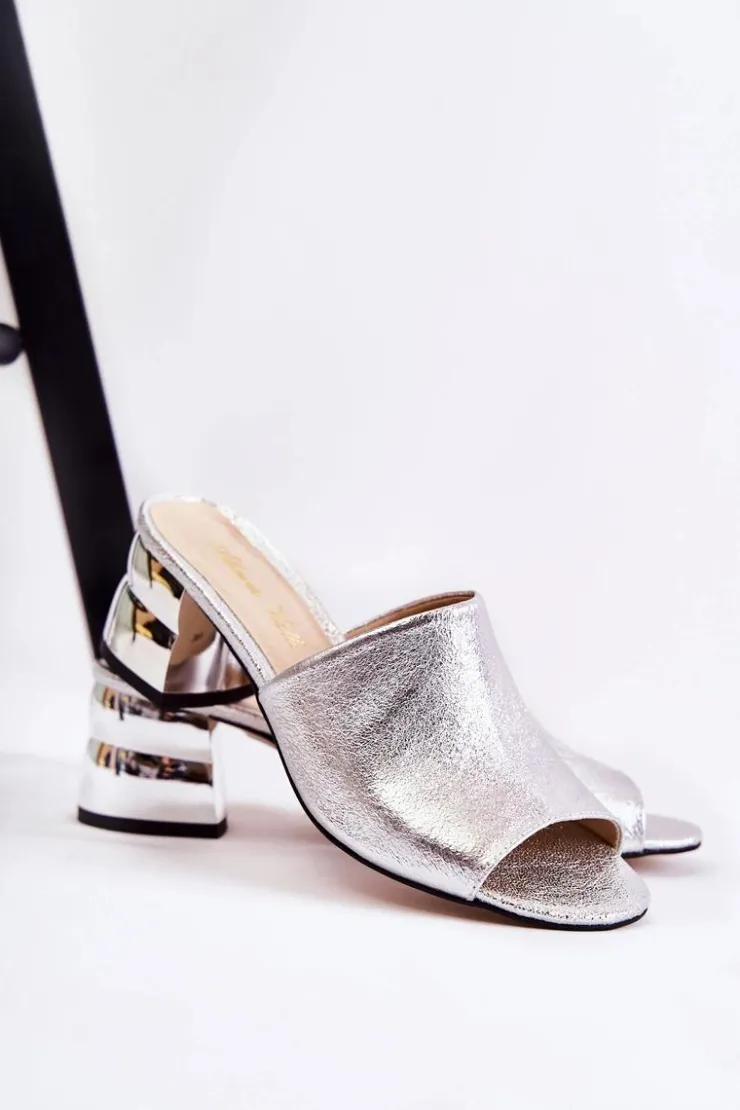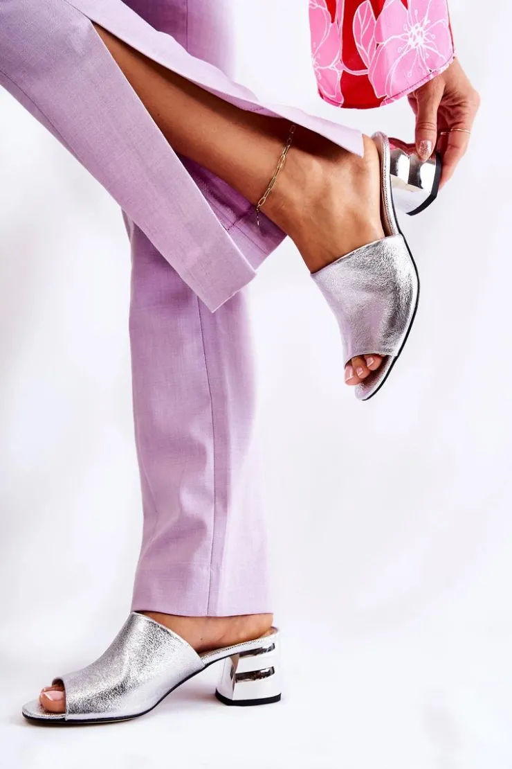Boto Klapki Na Obcasie|Klapki Damskie Klasyczne*Skórzane Klapki Damskie Na Obcasie Srebrne Perry