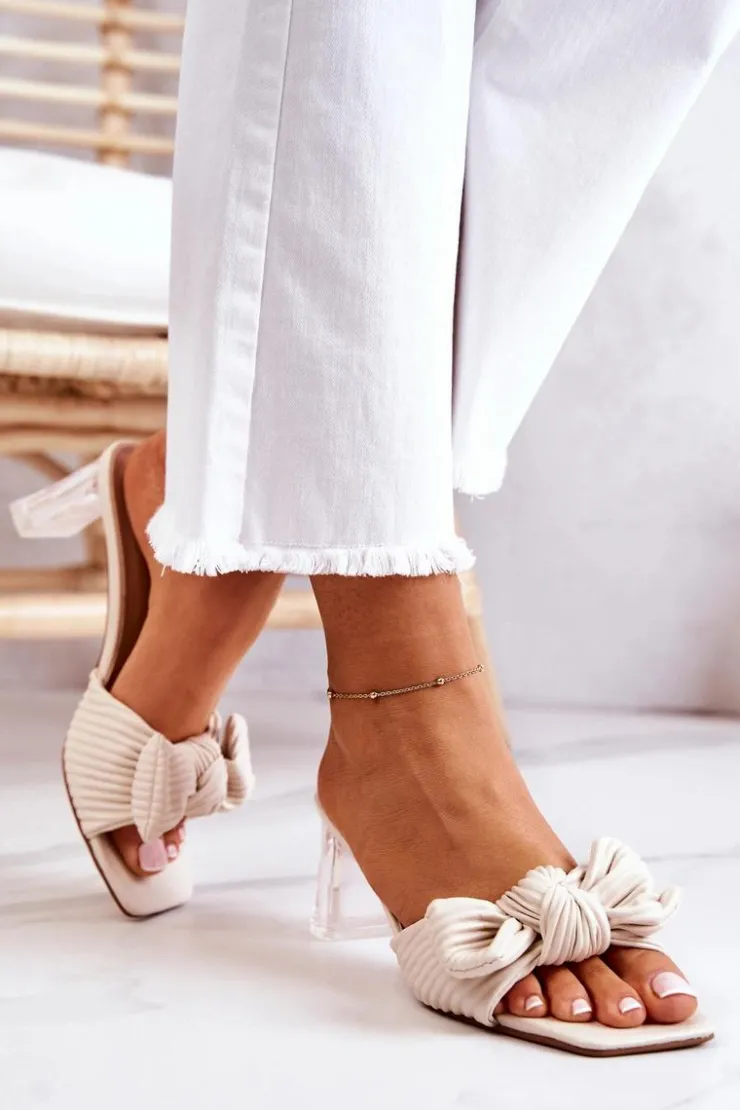Wyjątkowe klapki damskie wykonane z wysokojakościowej eko skóry. Bardzo wygodne i efektowne. Urocza kokarda dodaje tym klapkom elegancji. Świetnie będą pasować do eleganckich spodni czy spódniczek. Przezroczysty obcas idealnie komponuje się z całością. Koniecznie kup je już dziś! Przy wyborze rozmiaru prosimy kierować się tabelą rozmiarów.