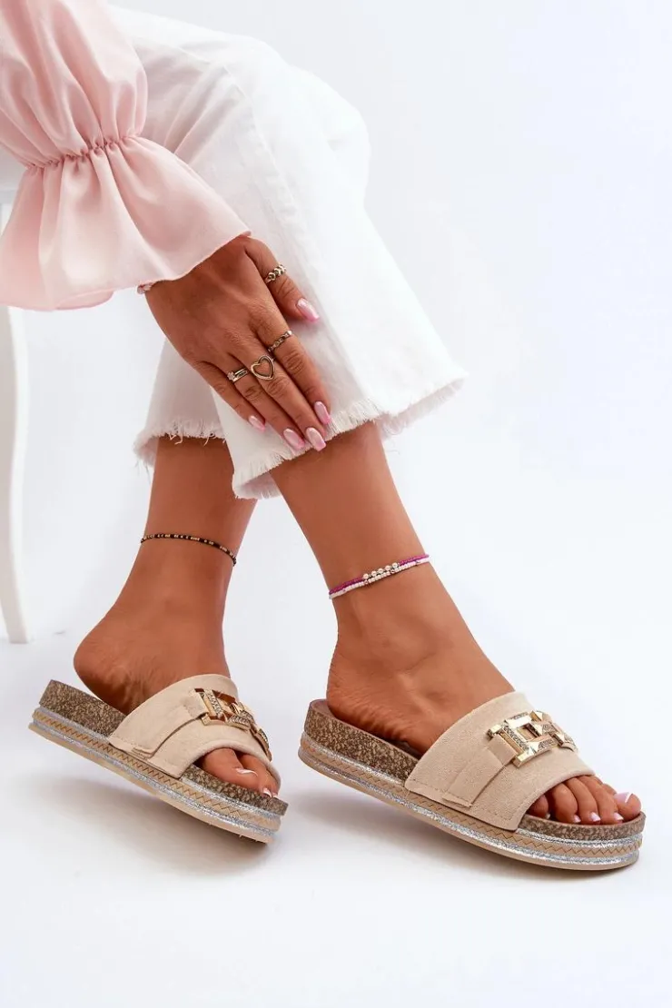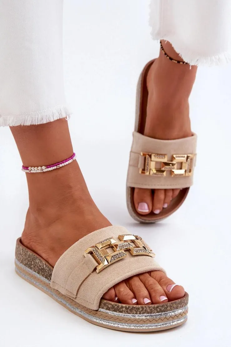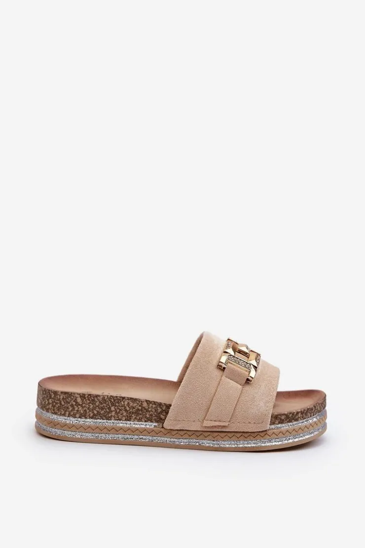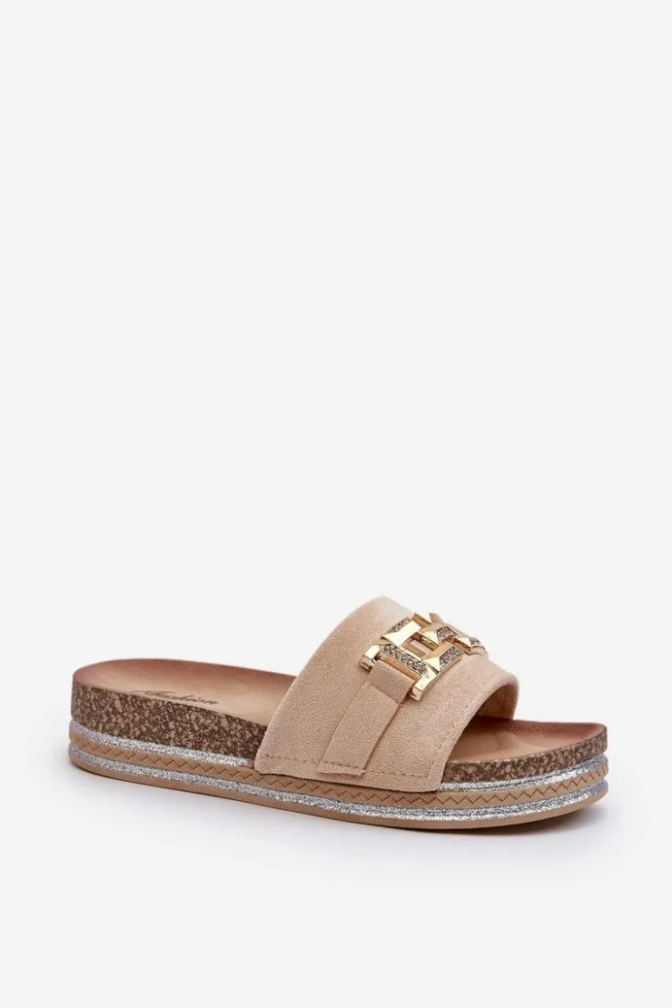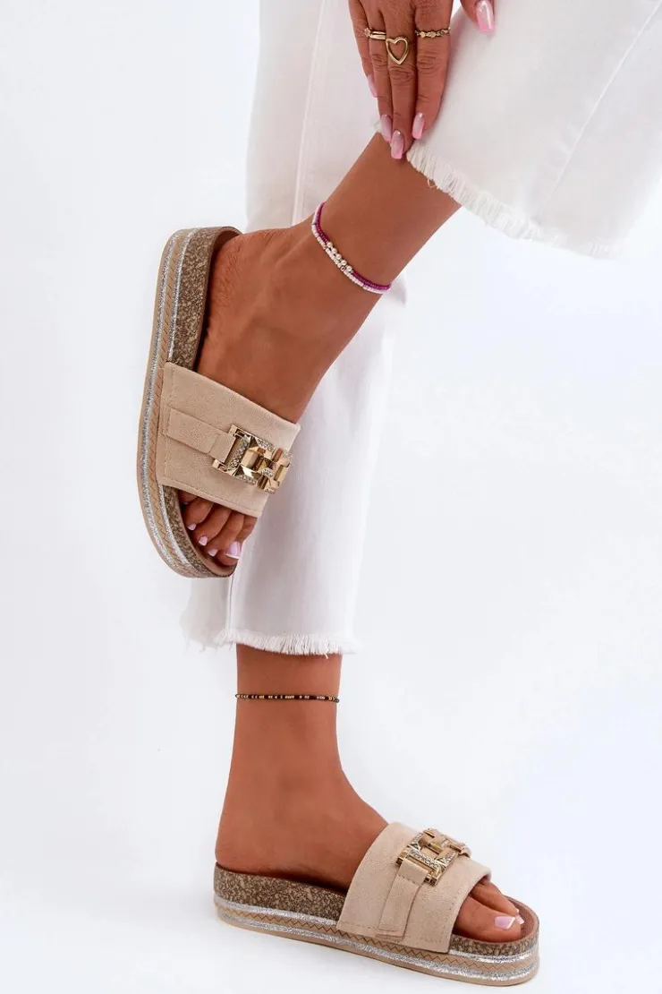 Boto Klapki Na Platformie|Klapki Damskie Klasyczne*Damskie Klapki Na Platformie Z Ozdobą Beżowe Vapireta