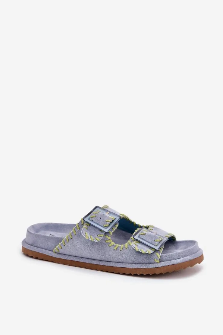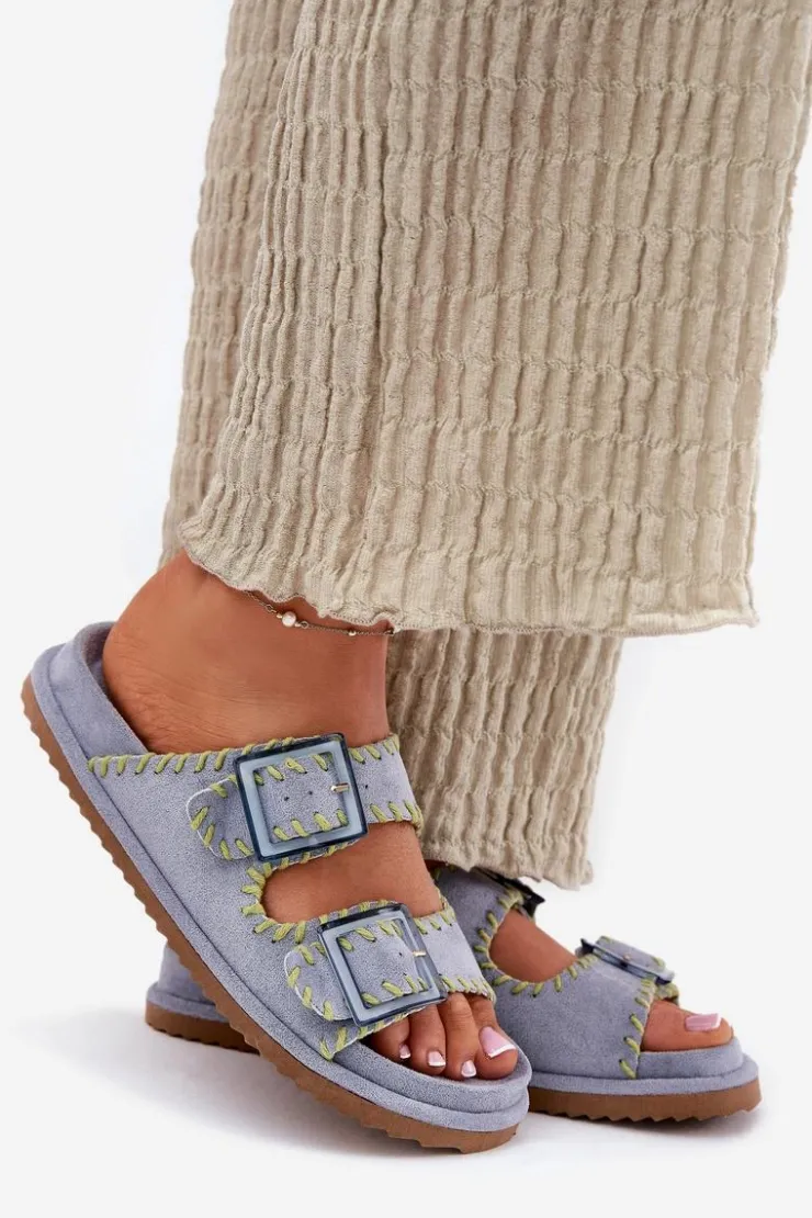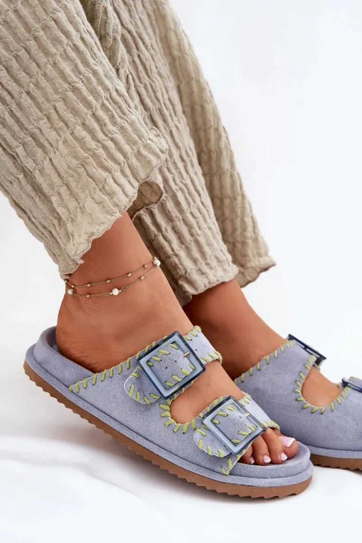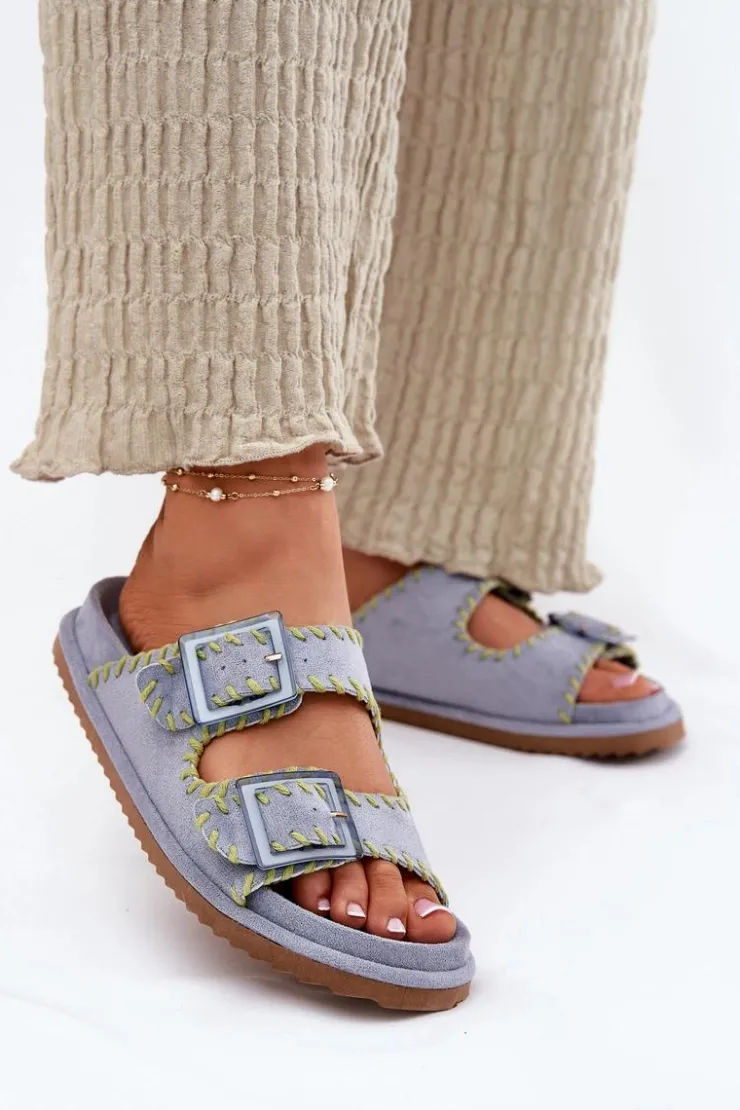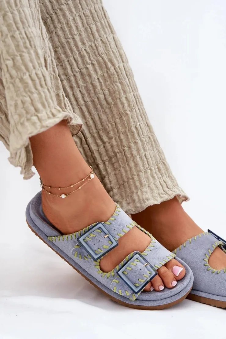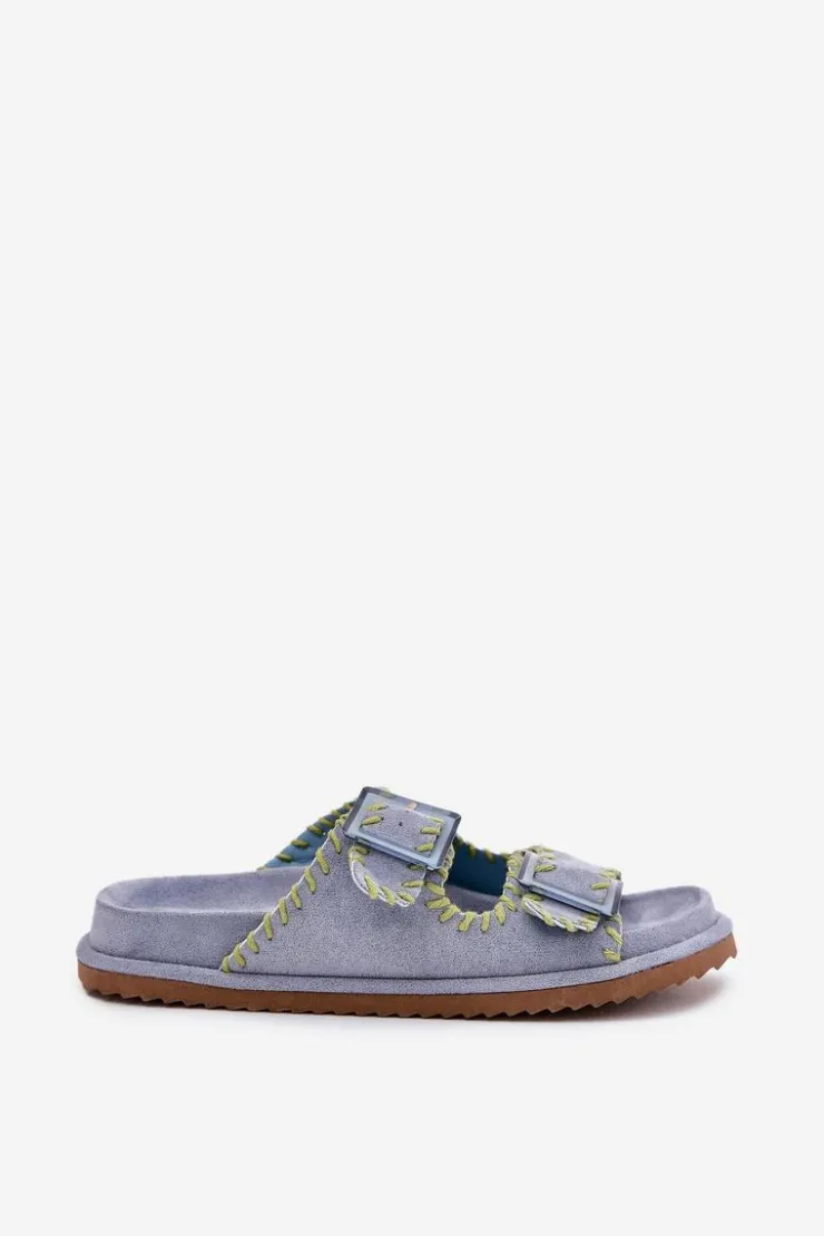 Boto Klapki Na Platformie|Klapki Damskie Klasyczne*Klapki Damskie Z Klamrami I Ozdobnym Obszyciem e Visley Niebieski