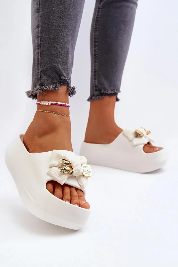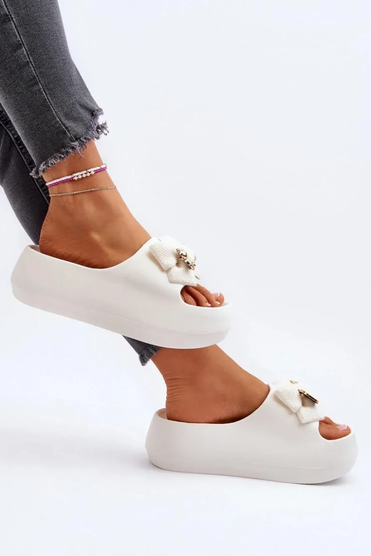 Boto Klapki Na Platformie|Klapki Damskie Klasyczne*Piankowe Klapki Damskie Z Kokardą Białe Salessa