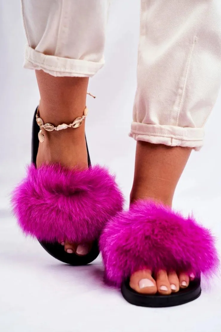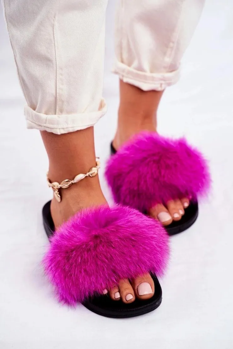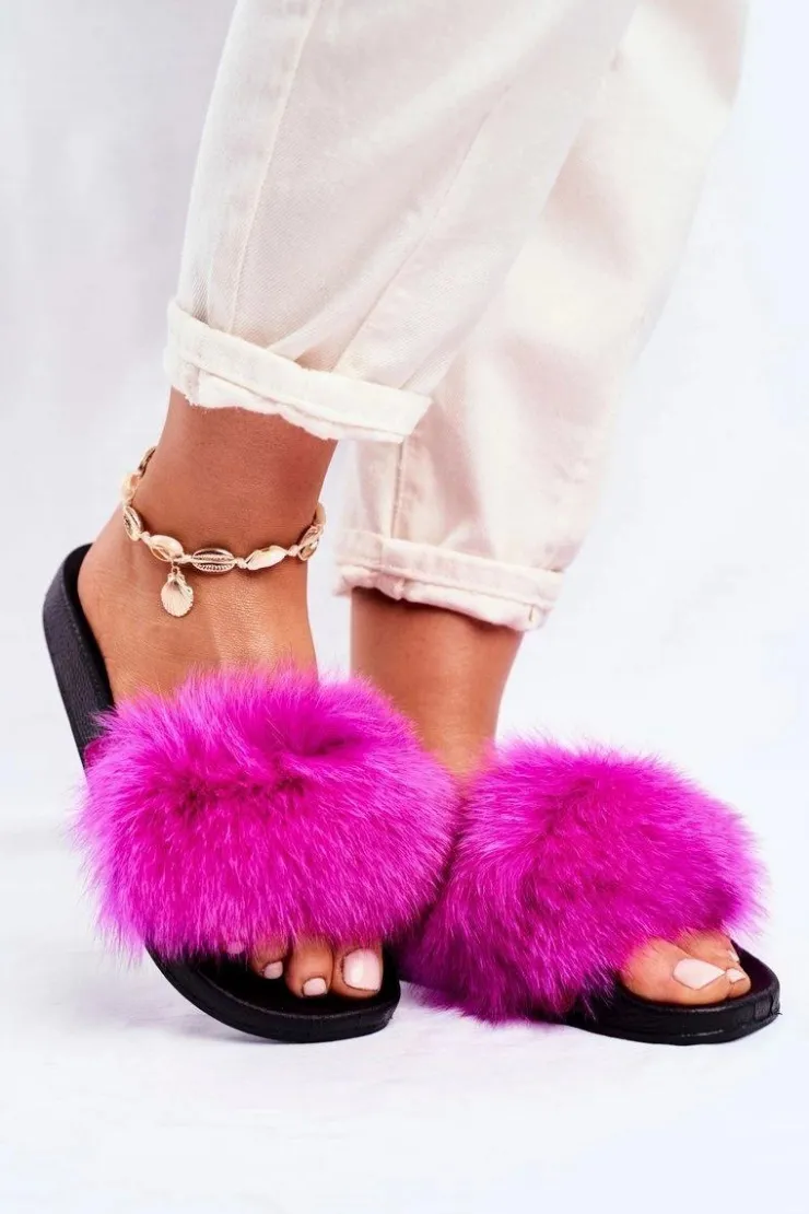 Boto Klapki Z Futerkiem|Klapki Damskie Klasyczne*Damskie Klapki z Futerkiem Fuksja Belmondo