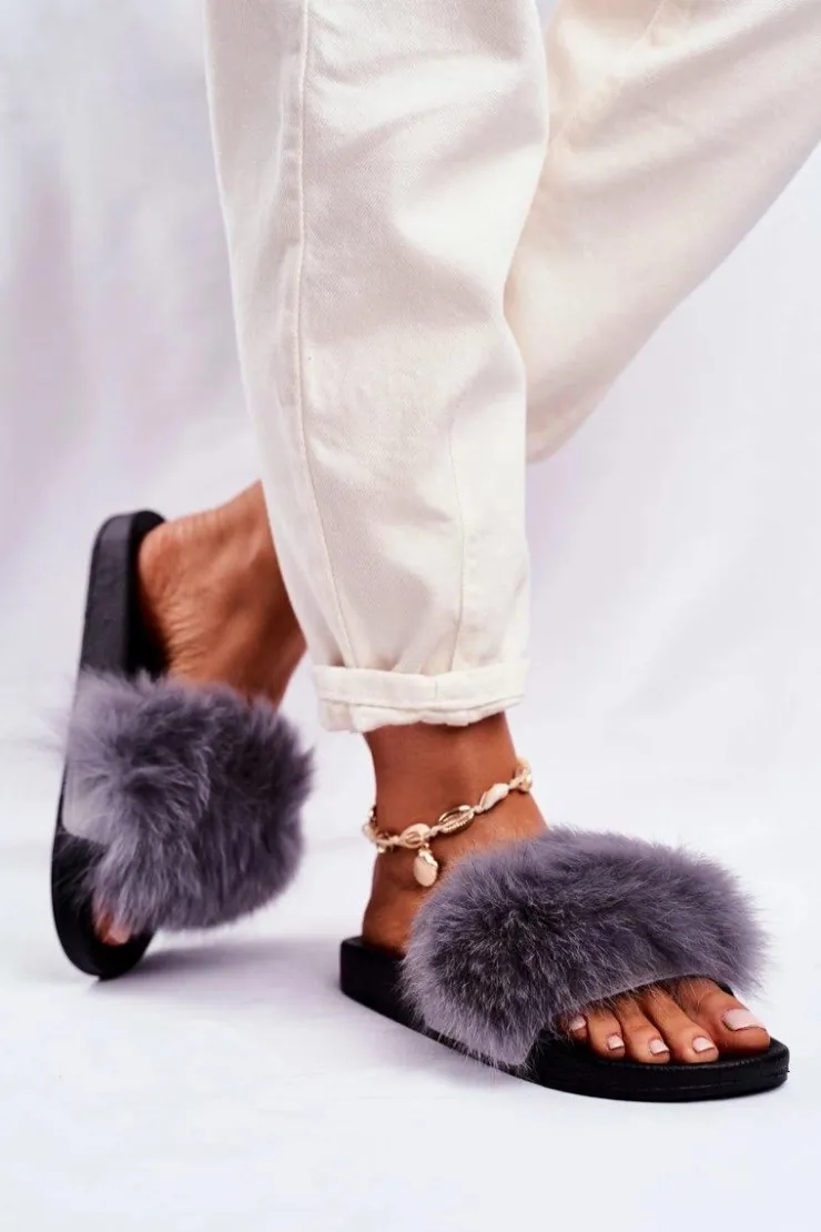 Wygodne klapki z naturalnym futerkiem. Gumowa, delikatnie profilowana podeszwa oraz miękka cholewka zapewnią komfort. Klapki dostępne są w wielu pięknych kolorach.Przy wyborze rozmiaru prosimy sugerować się tabelą rozmiarów.