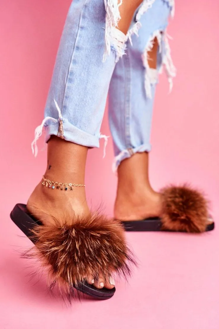 Klapki damskie z naturalnym futerkiem. Podeszwa wykonana jest z gumowego, lekkiego tworzywa. Delikatnie profilowana wkładka zadba o Twój komfort.