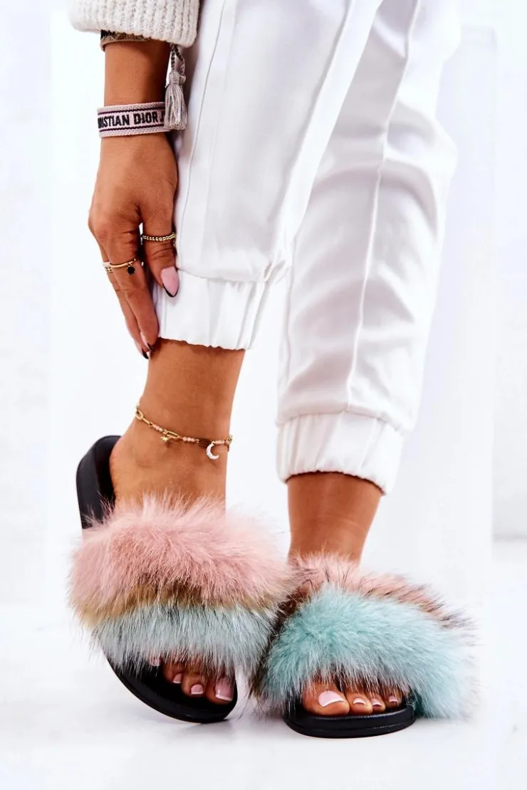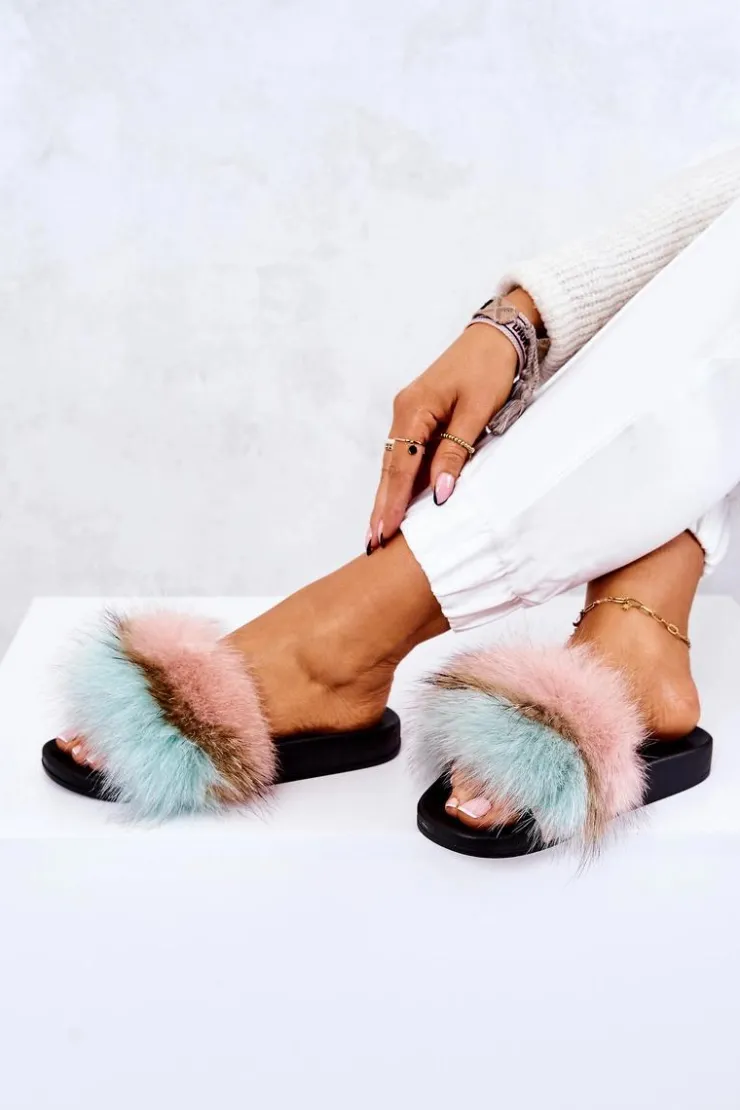 Klapki damskie z naturalnym futerkiem. Podeszwa wykonana jest z gumowego, lekkiego tworzywa. Delikatnie profilowana wkładka zadba o Twój komfort.