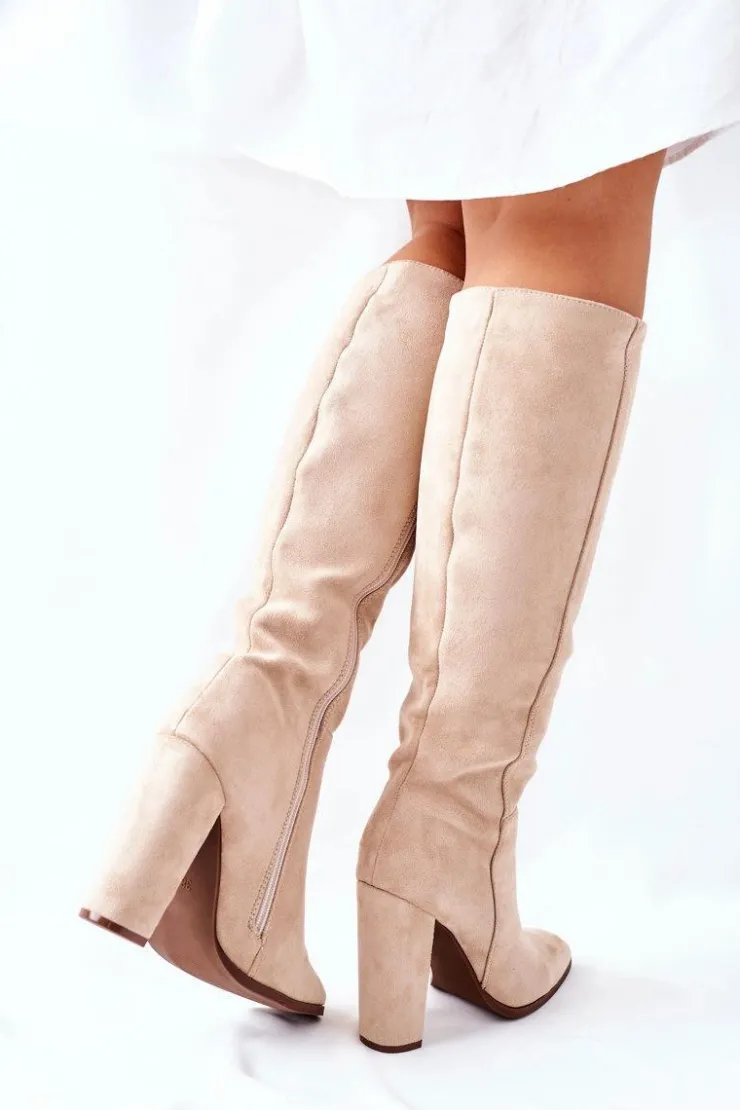 Modne, stylowe damskie kozaki, które podbiją serca każdej fanki mody. Kozaki zostały wykonane z ekologicznego zamszu, który łączy się idealnie z wieloma stylizacjami. Wnętrze pokryte, ciepłym i miłym w dotyku kocem obuwniczym. Suwak po wewnętrznej stronie ułatwi zakładanie. Przy wyborze rozmiaru prosimy kierować tabelą rozmiarów.