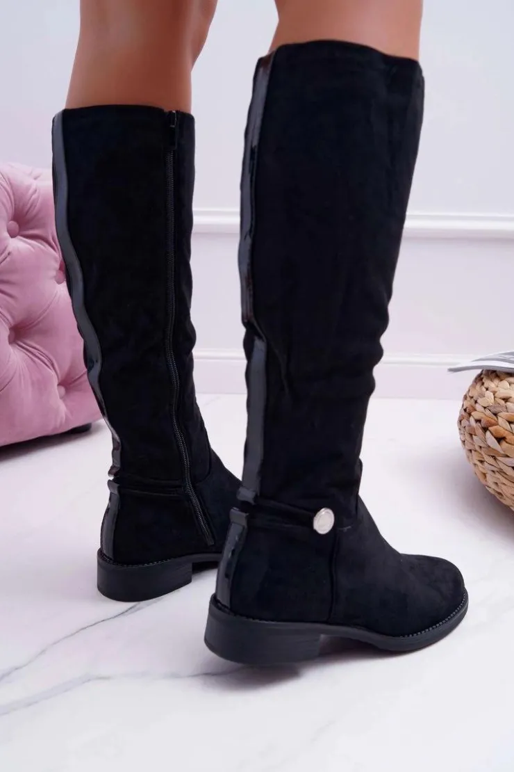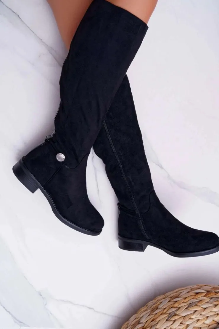 Boto Kozaki Damskie Płaskie Do Kolan Czarne Xomea