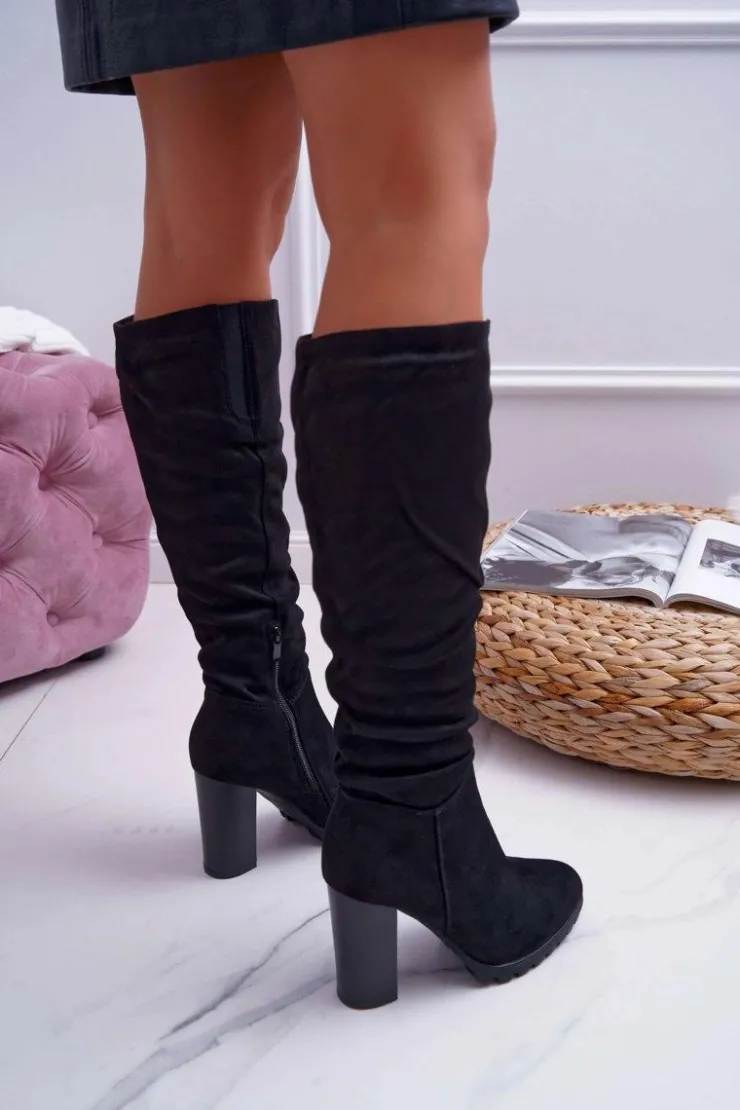 Boto Kozaki Na Obcasie|Kozaki Zamszowe*Kozaki Damskie Na Słupku Zamszowe Czarne Marion