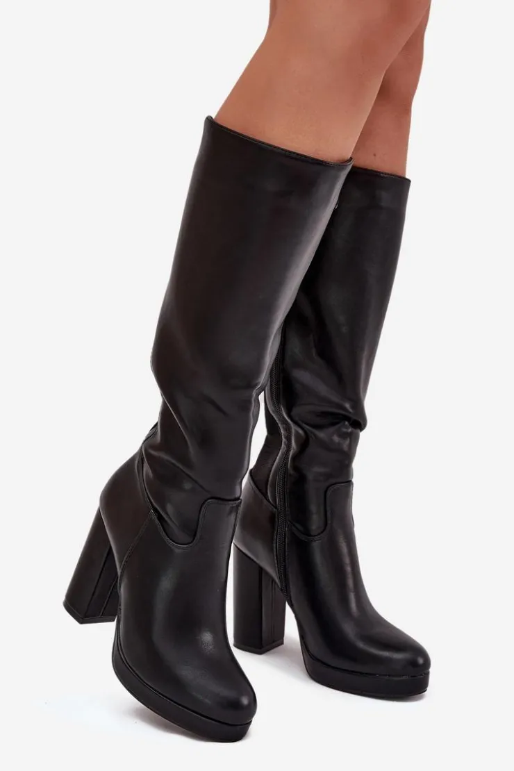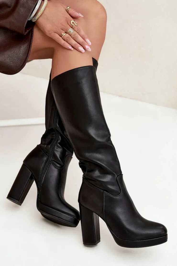 Eleganckie damskie kozaki z gładkiej eko skóry, zapinane na zamek, to połączenie klasyki z nowoczesnym stylem. Zaokrąglone noski zapewniają wygodę, a obcas w formie słupka dodaje stabilności. Model ten posiada elastyczną wstawkę. Doskonałe do sukienek i spódnic, te kozaki stanowią idealne uzupełnienie eleganckich stylizacji, łącząc komfort z ponadczasową elegancją. Przy wyborze rozmiaru prosimy sugerować się tabelą rozmiarów.