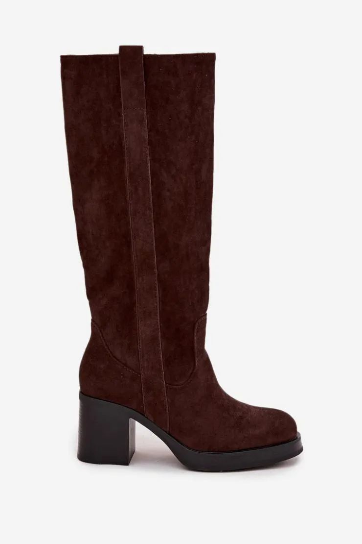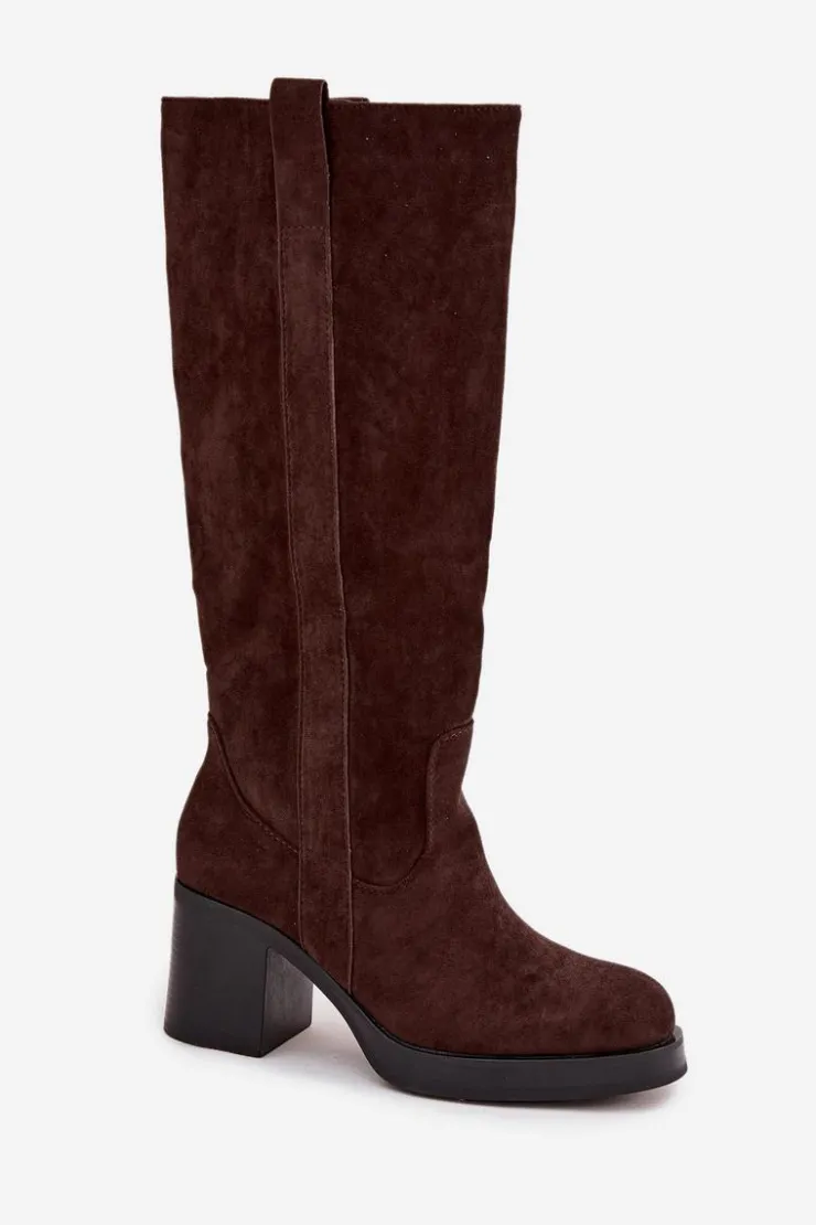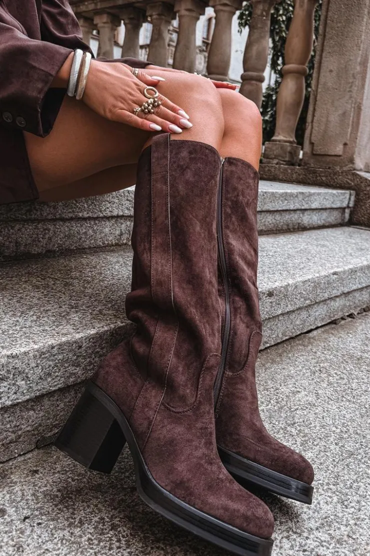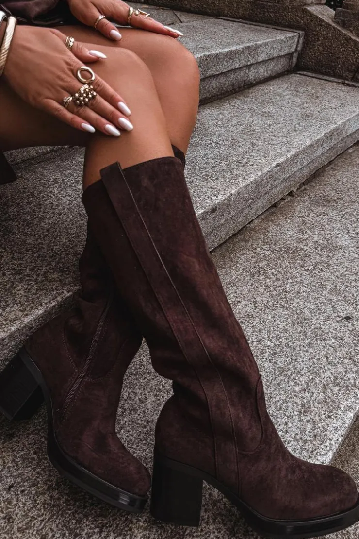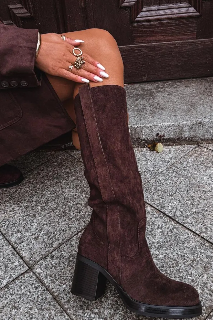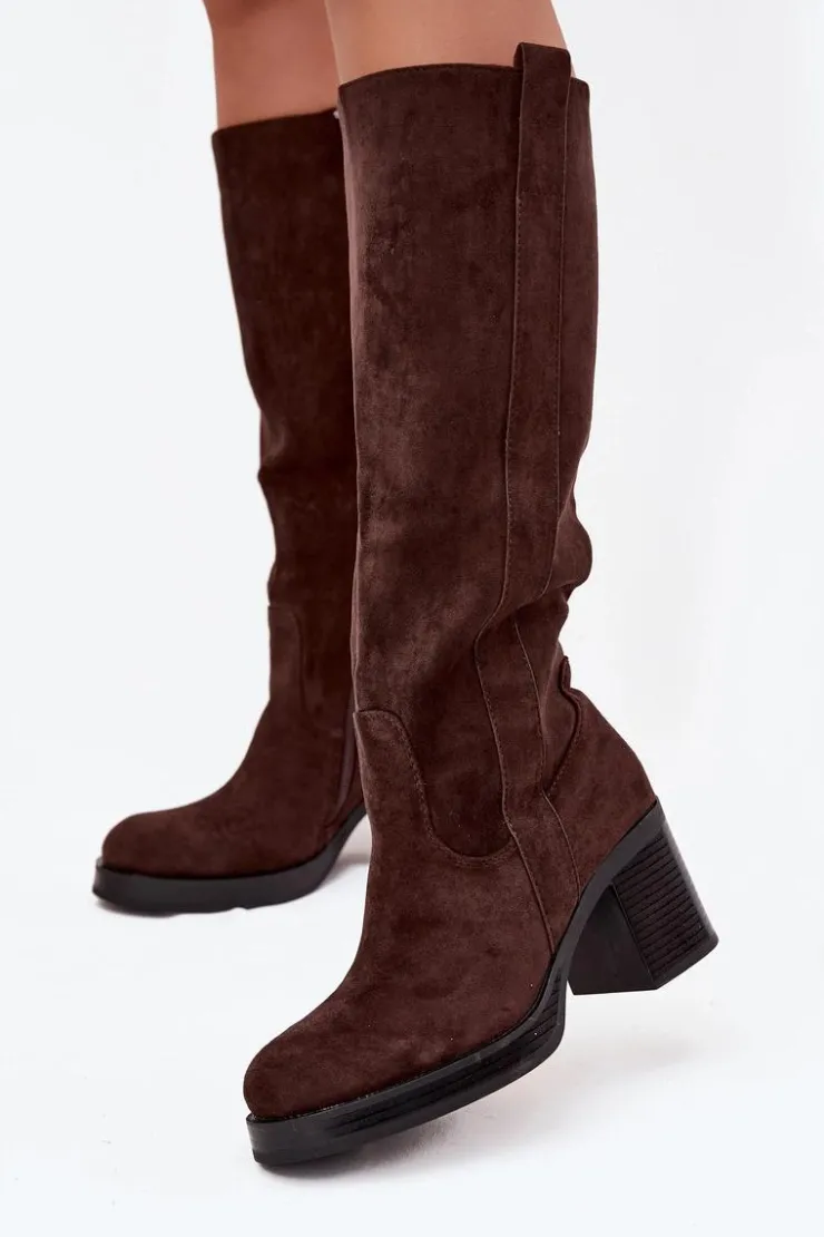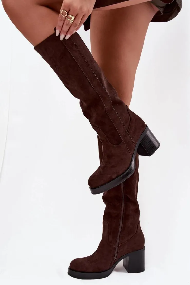 Kozaki damskie wykonane z eko zamszu to doskonała propozycja na sezon jesienno-zimowy. Model osadzony na masywnym obcasie typu słupek zapewnia stabilność oraz wygodę podczas noszenia. Zaokrąglone noski nadają całości klasycznego wyglądu, a praktyczne zapięcie na zamek ułatwia zakładanie i zdejmowanie. Wnętrze ocieplane miękkim kocem obuwniczym gwarantuje komfort termiczny w chłodniejsze dni. To uniwersalne kozaki, które świetnie sprawdzą się zarówno w codziennych, jak i bardziej eleganckich stylizacjach. Przy wyborze rozmiaru prosimy sugerować się tabelą rozmiarów.