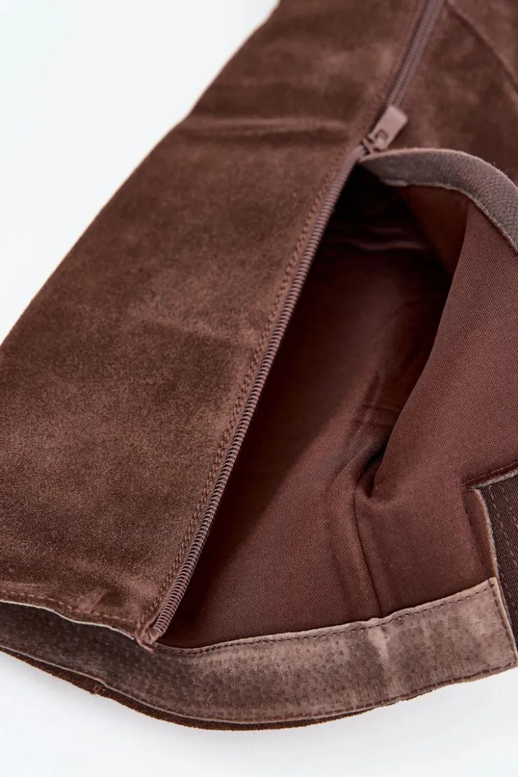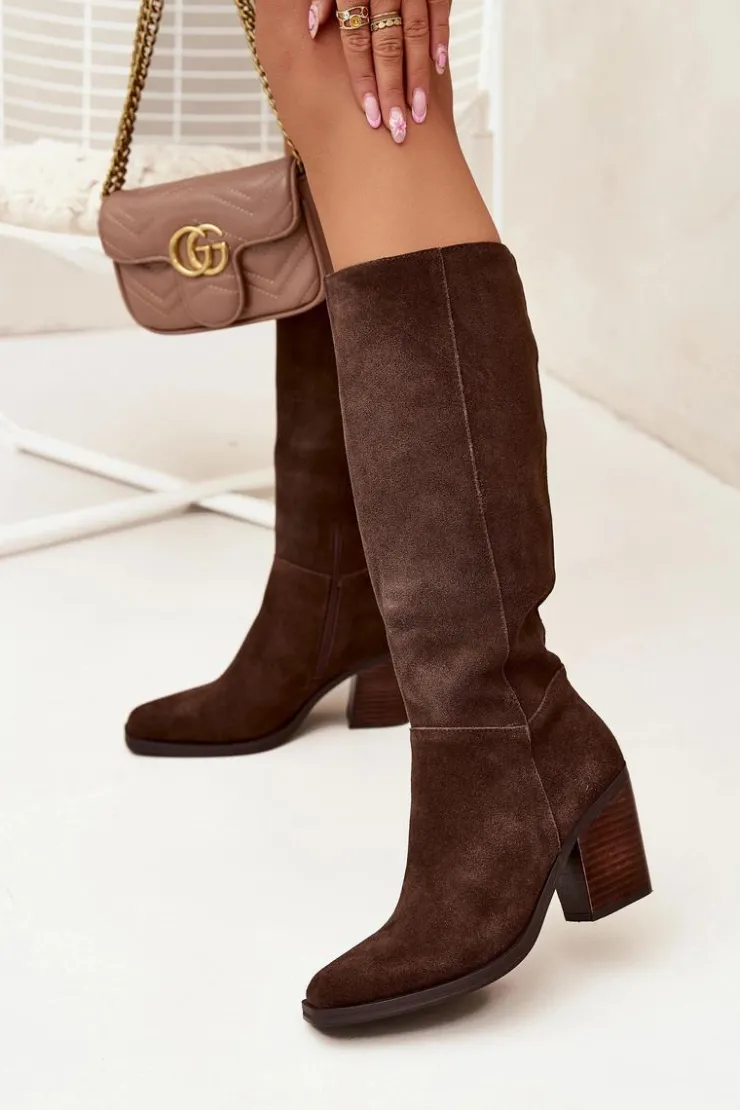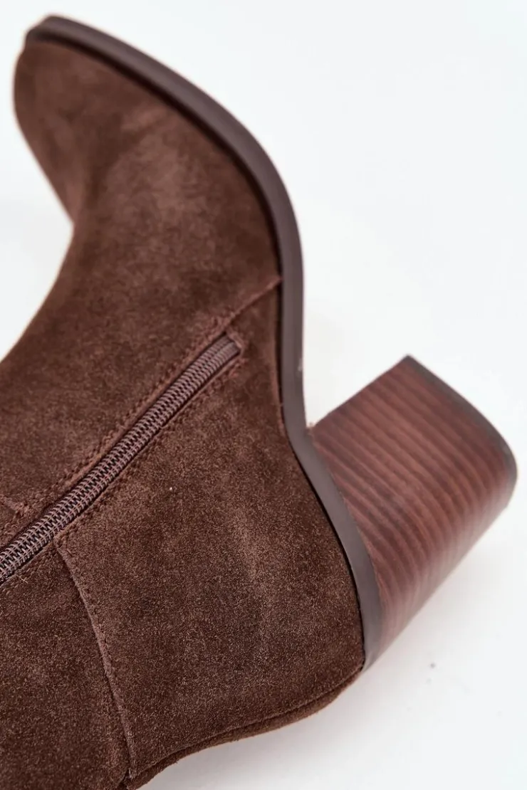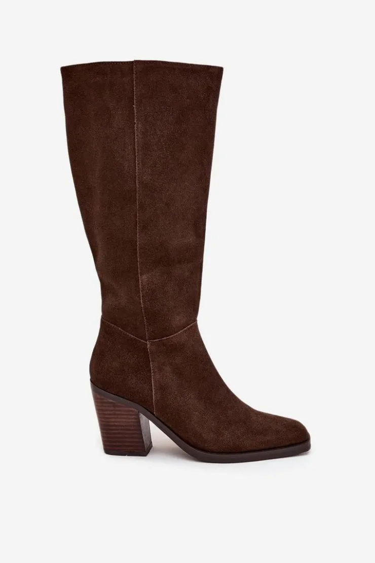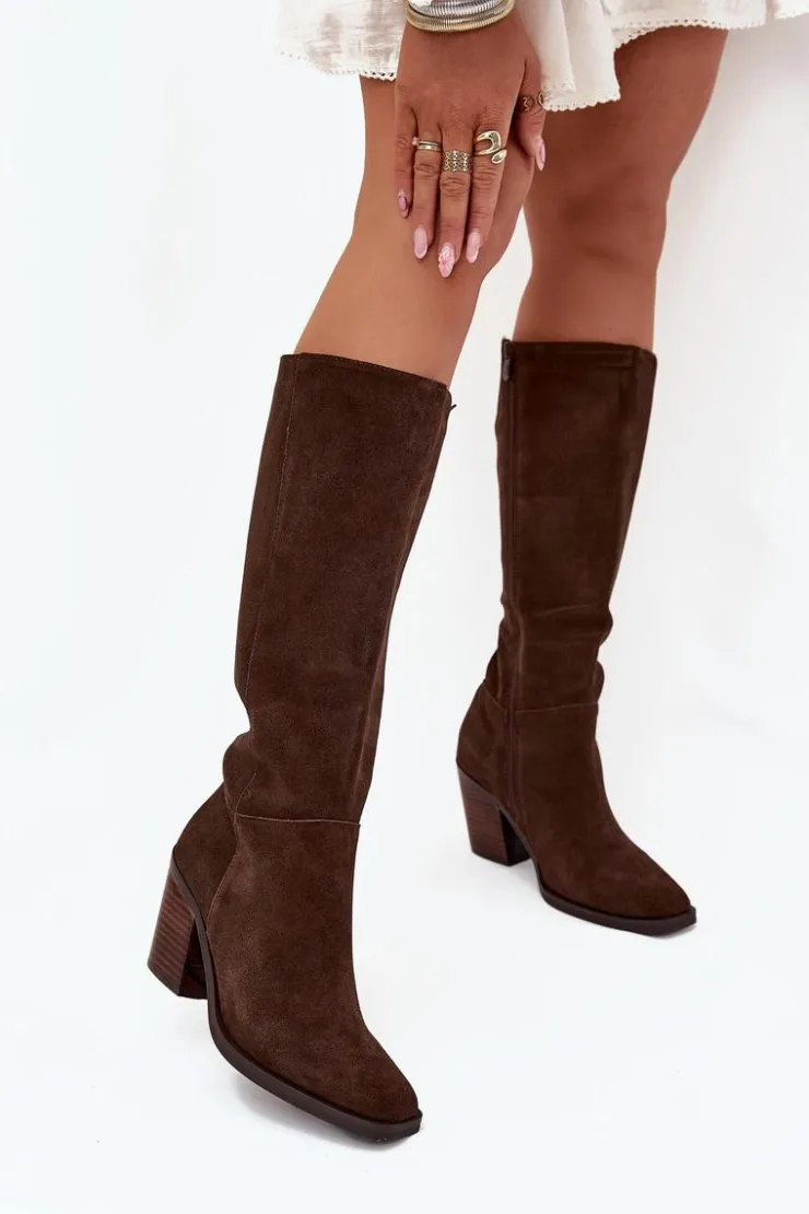 Zamszowe kozaki na słupku z zamkiem czekoladowe Lissara
