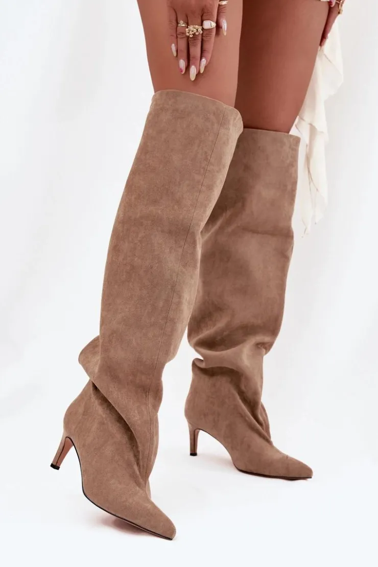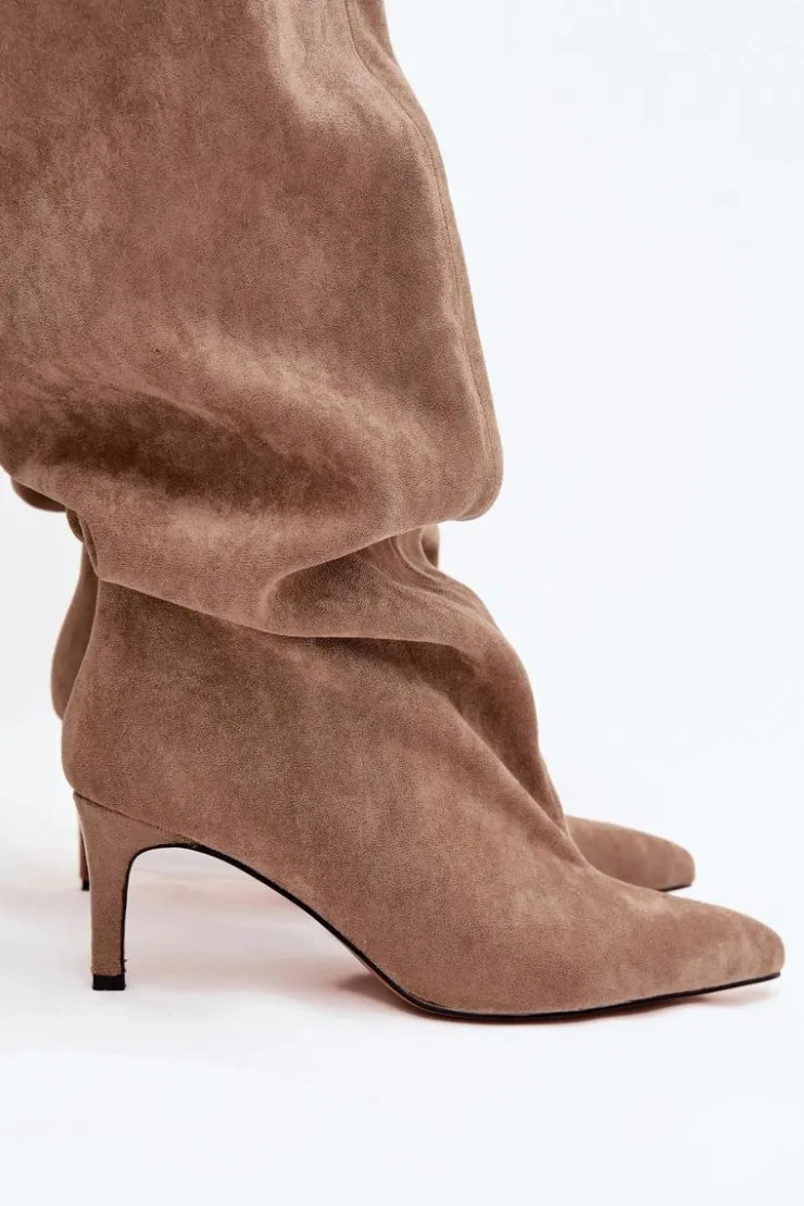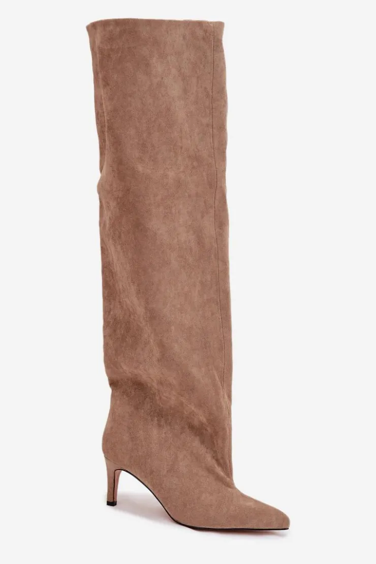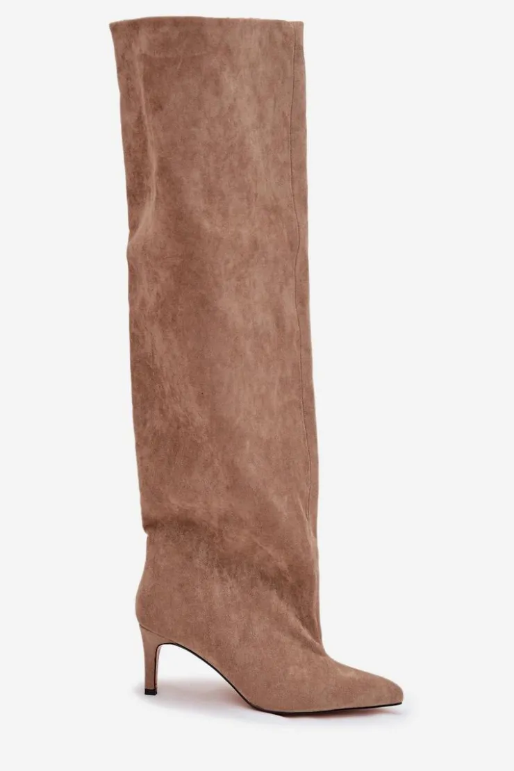 Kozaki damskie na szpilce wsuwane beżowe Mavilla