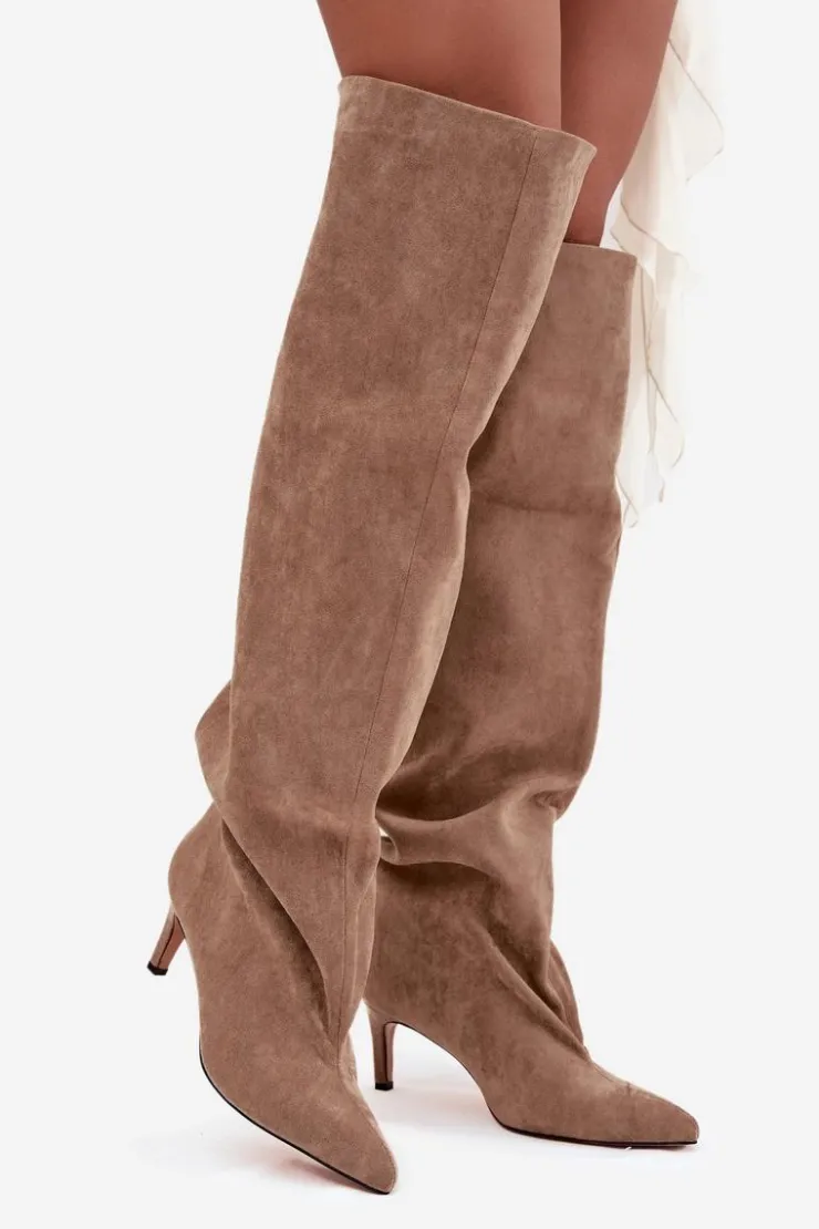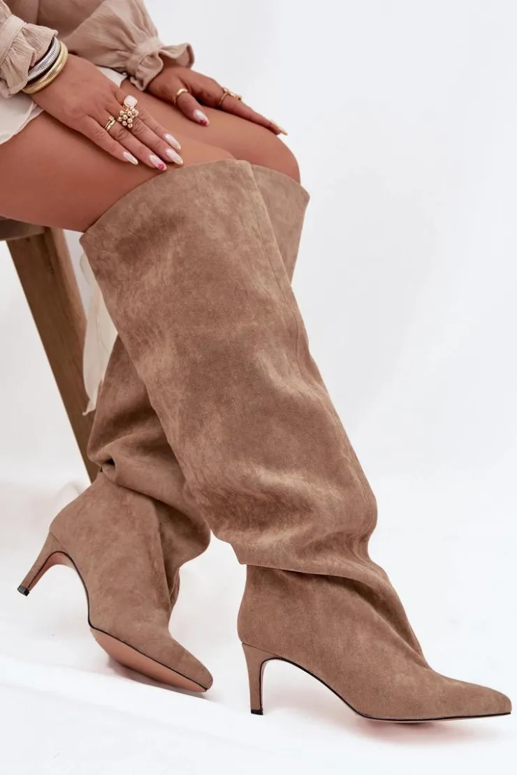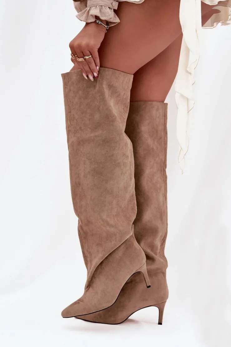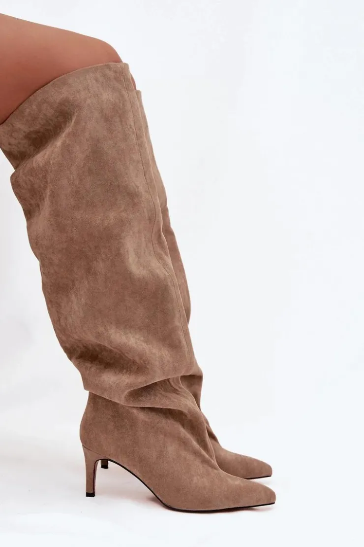 Kozaki damskie na szpilce wsuwane beżowe Mavilla