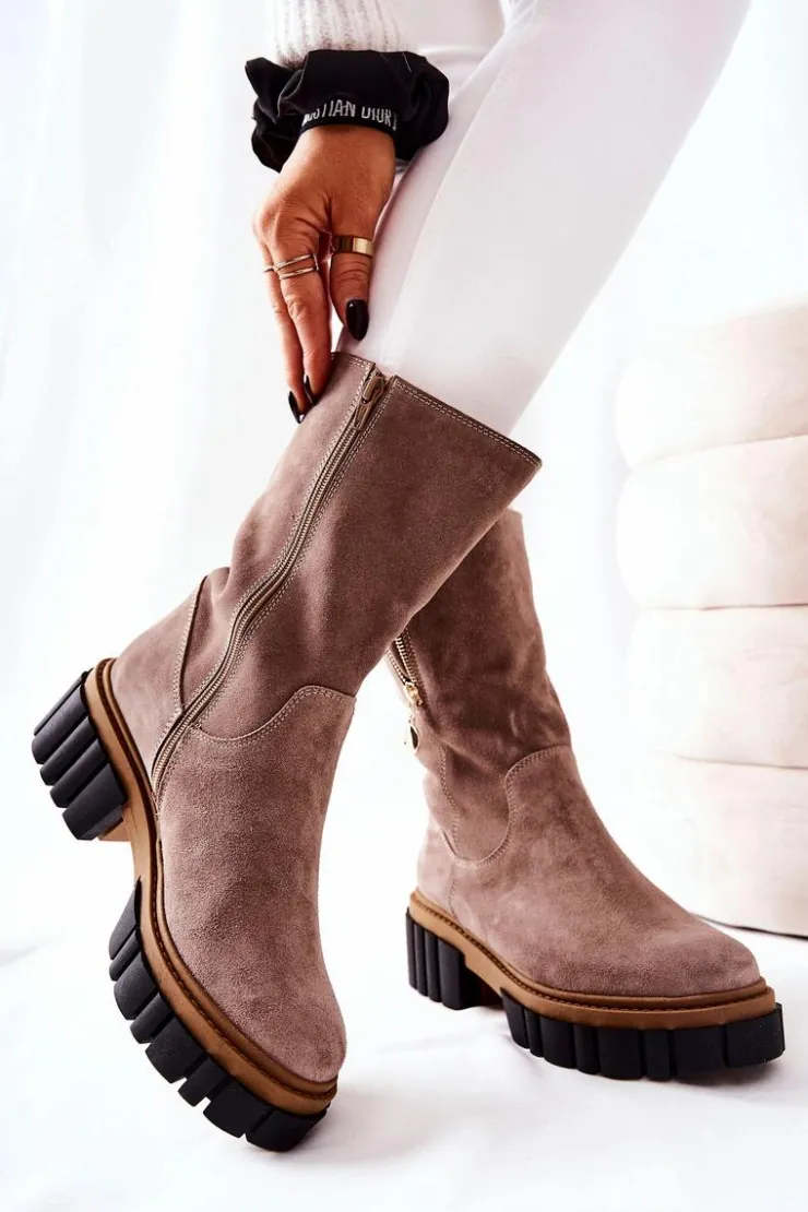 Śliczne botki-kozaczki zostały wykonane z naturalnej zamszowej skóry. Środek jest ocieplany kocem obuwniczym. Botki posiadają z obu stron suwaki. Będą pasować do wielu stylizacji. Podeszwa oraz masywny obcas zapewnią stabilność. Koniecznie musisz je mieć! Nie czekaj aż znikną!Przy wyborze rozmiaru prosimy sugerować się tabelą rozmiarów.