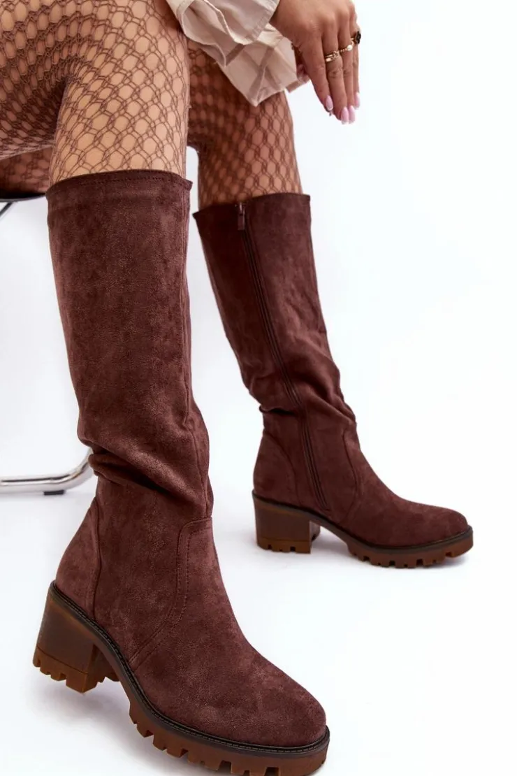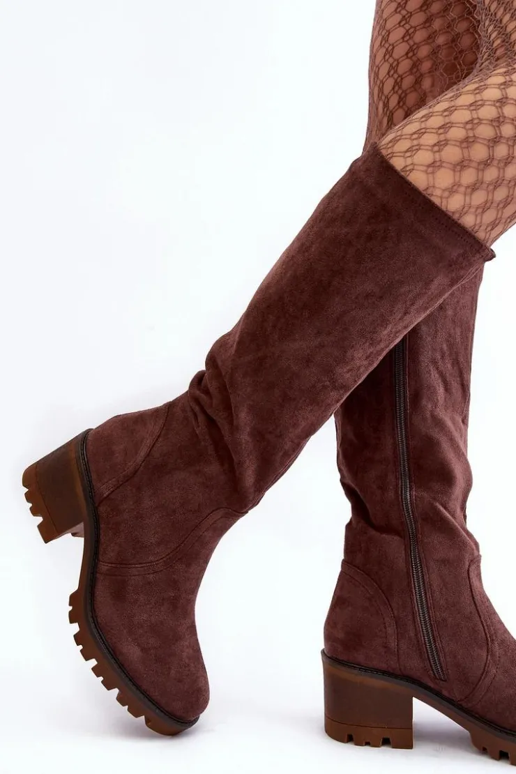 Kozaki damskie z cholewką przed kolano. Wykonane z eko zamszu. Zapinane na suwak. Osadzone na niskim, masywnym obcasie. Zapiętek usztywniany. Noski zaokrąglone Wykorzystasz je w wielu stylizacjach! Koniecznie muszą być Twoje! Przy wyborze rozmiaru prosimy sugerować się tabelą rozmiarów.