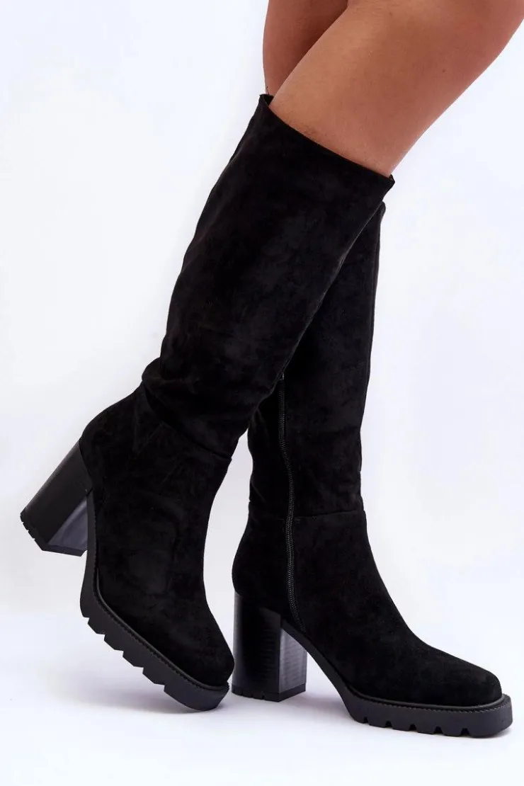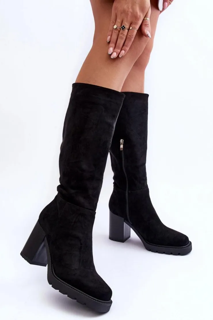 Kozaki damskie wykonane z eko zamszu. Zapinane na suwak po wewnętrznej stronie buta. Osadzone na masywnym obcasie. Model z cholewką przed kolano. Zapiętek usztywniany. Wnętrze ocieplone kocem obuwniczym. Wykorzystasz je w wielu stylizacjach! Koniecznie muszą być Twoje! Przy wyborze rozmiaru prosimy sugerować się tabelą rozmiarów.