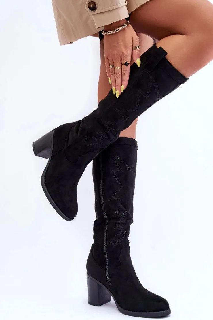 Kozaki damskie zostały wykonane z eko zamszu. Osadzone na obcasie w postaci słupka. Zapinane na suwak z boku. Dodatkowo zapiętek w tym obuwiu został usztywniony. Miękka wkładka zapewni komfortowe użytkowanie. Model ten świetnie sprawdzi się w wielu stylizacjach! Przy wyborze rozmiaru prosimy sugerować się tabelą rozmiarów.