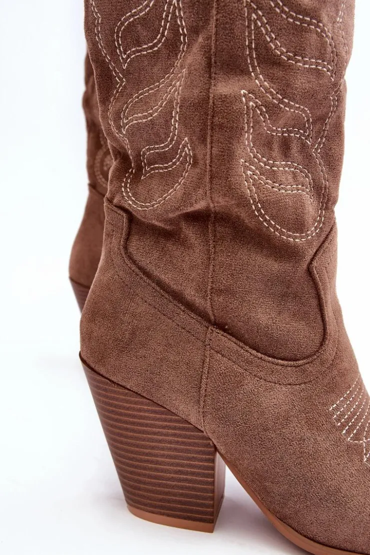 Kozaki damskie z cholewką przed kolano. Osadzone na obcasie w postaci słupka. Noski w szpic optycznie wysmuklą nogi. Zapiętek jest usztywniony. Miękka, eko skórzana wkładka zapewni komfort podczas użytkowania. Model wsuwany z dodatkowym suwakiem na dole cholewki. Świetnie sprawdzą się podczas jesiennych stylizacji! Przy wyborze rozmiaru prosimy sugerować się tabelą rozmiarów.