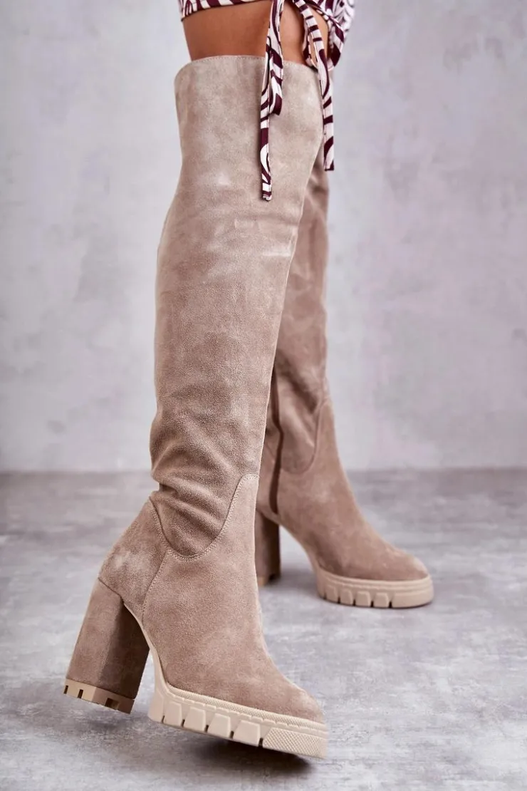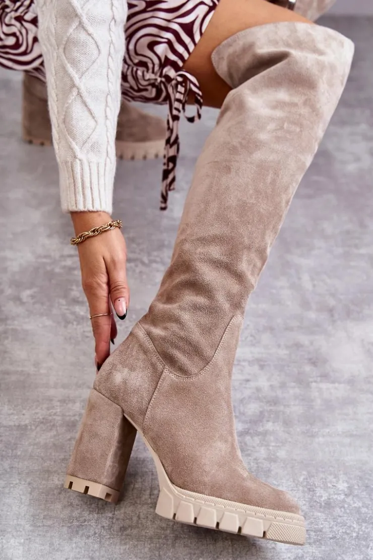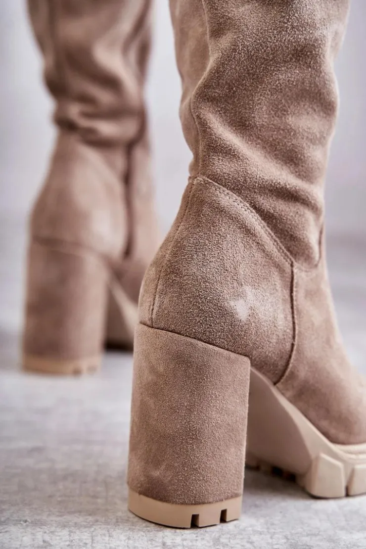 Piękne kozaki damskie od polskiego producenta zostały wykonane z naturalnego zamszu. Model z zaokrąglonym noskiem. Cholewka na całości zapinana na suwak, z ozdobnym wycięciem z tyłu. Obcas w postaci słupka i delikatna platforma to gwarancja stabilności. Skórzana, miękka wkładka zapewni komfort podczas użytkowania. Idealny model na przejściowe sezony. Dodatkowo kozaki posiadają usztywniany zapiętek. Przy wyborze rozmiaru prosimy sugerować się tabelą rozmiarów.
