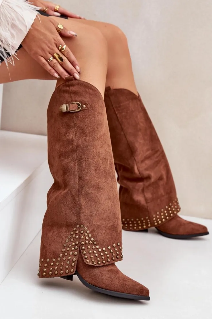 Stylowe botki damskie wykonane z eko zamszu. Model wyróżnia się wywiniętą cholewką ozdobioną dżetami i elegancką klamrą. Szpiczaste noski nadają obuwiu szyku i podkreślają jego wyjątkowy design. Idealny wybór dla kobiet ceniących modę i oryginalność w codziennych stylizacjach. Przy wyborze rozmiaru prosimy sugerować się tabelą rozmiarów.