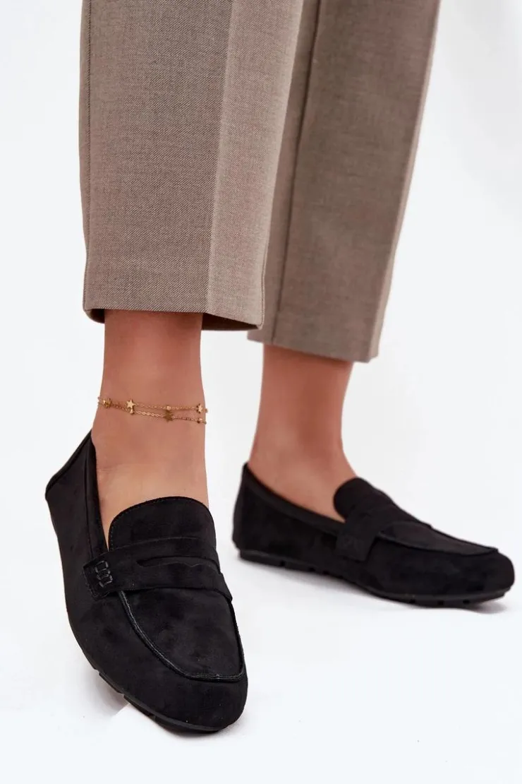 Damskie mokasyny z eko zamszu to połączenie klasyki i wygody, idealne na codzienne wyjścia. Model osadzony na płaskiej podeszwie zapewnia komfort podczas całodziennego noszenia, a zaokrąglone noski gwarantują swobodę dla palców. Charakterystyczny pasek z wycięciem z przodu dodaje subtelnego, eleganckiego akcentu, który wyróżnia buty w casualowych stylizacjach. Dzięki uniwersalnemu fasonowi mokasyny doskonale komponują się zarówno ze spodniami, spódnicami jak i sukienkami. Przy wyborze rozmiaru prosimy sugerować się tabelą rozmiarów.