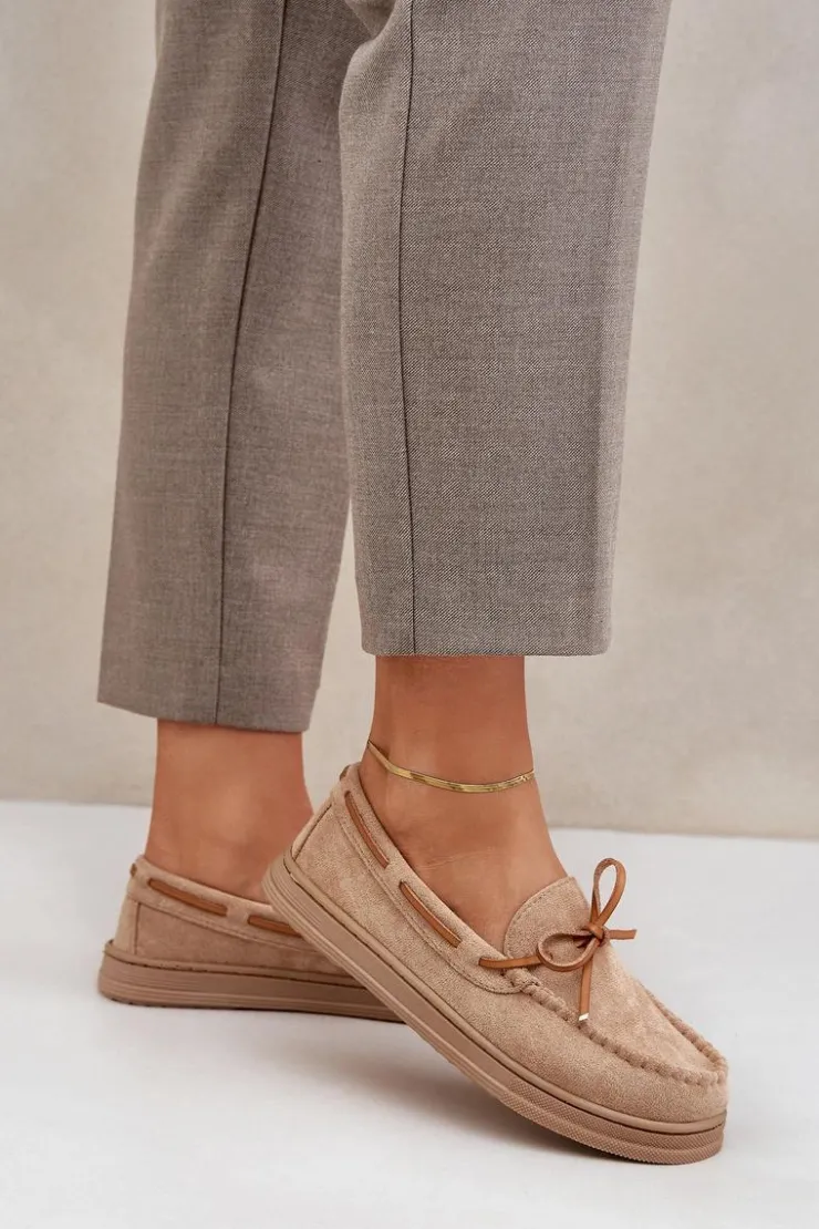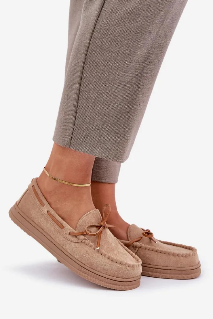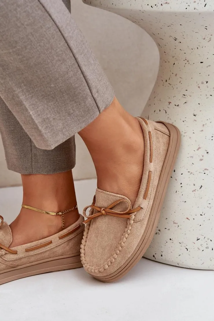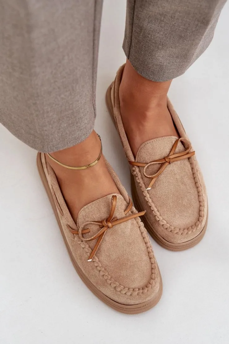 Mokasyny damskie z eko zamszu to klasyczna i wygodna propozycja na co dzień. Osadzone na płaskiej podeszwie, zapewniają komfort noszenia przez cały dzień. Z przodu ozdobione subtelną kokardką, która nadaje im uroku i kobiecego charakteru. Model ten to idealny wybór dla kobiet, które cenią wygodę połączoną z delikatnym akcentem mody. Podczas wyboru rozmiaru prosimy sugerować się tabelą rozmiarów.