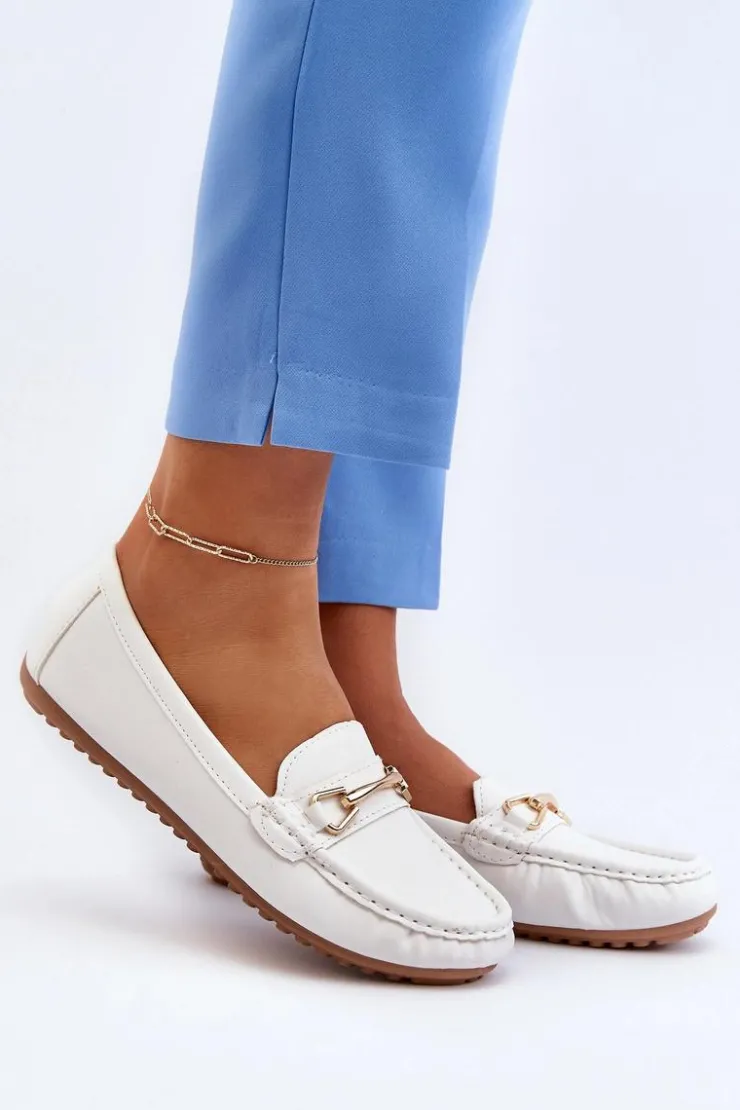 Mokasyny damskie to obuwie, które powinno znaleźć się w szafie każdej kobiety. Wykonane z eko skóry. Przód ozdobiony paseczkiem ze złotą ozdobą. Zaokrąglone noski dodają im subtelnego uroku. Ten klasyczny fason z pewnością dopełni wiele wiosenno-letnich stylizacji! Przy wyborze rozmiaru prosimy sugerować się tabelą rozmiarów.