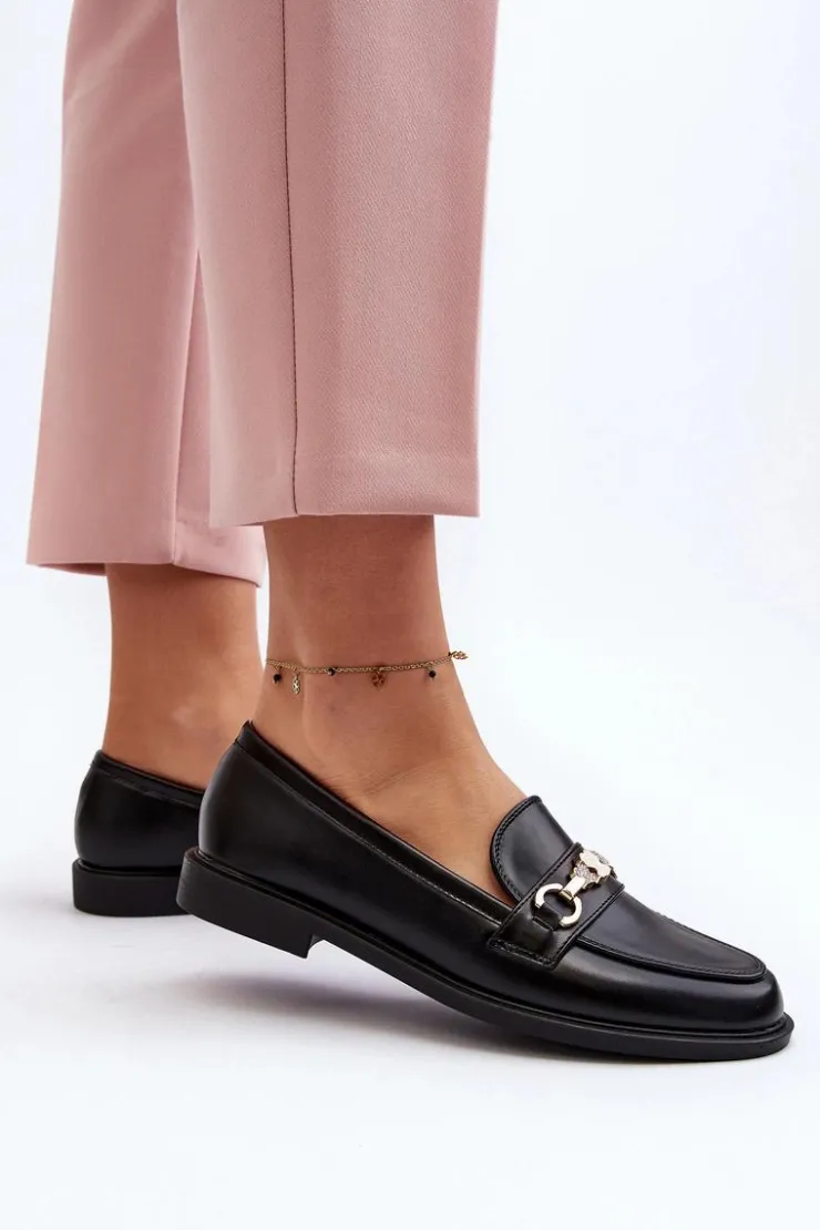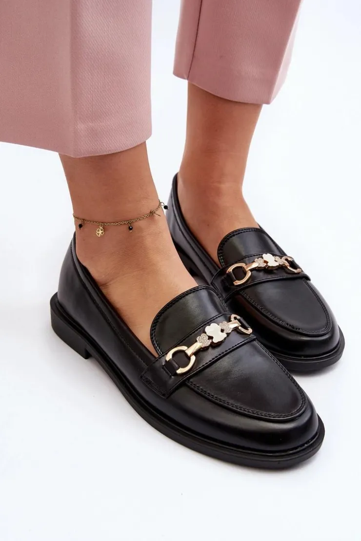 Mokasyny damskie z ozdobą na pasku. Wykonane z eko skóry. Osadzone na płaskim obcasie. Noski zaokrąglone. Ten modny fason dopełni wiele wiosennych stylizacji! Przy wyborze rozmiaru prosimy sugerować się tabelą rozmiarów.