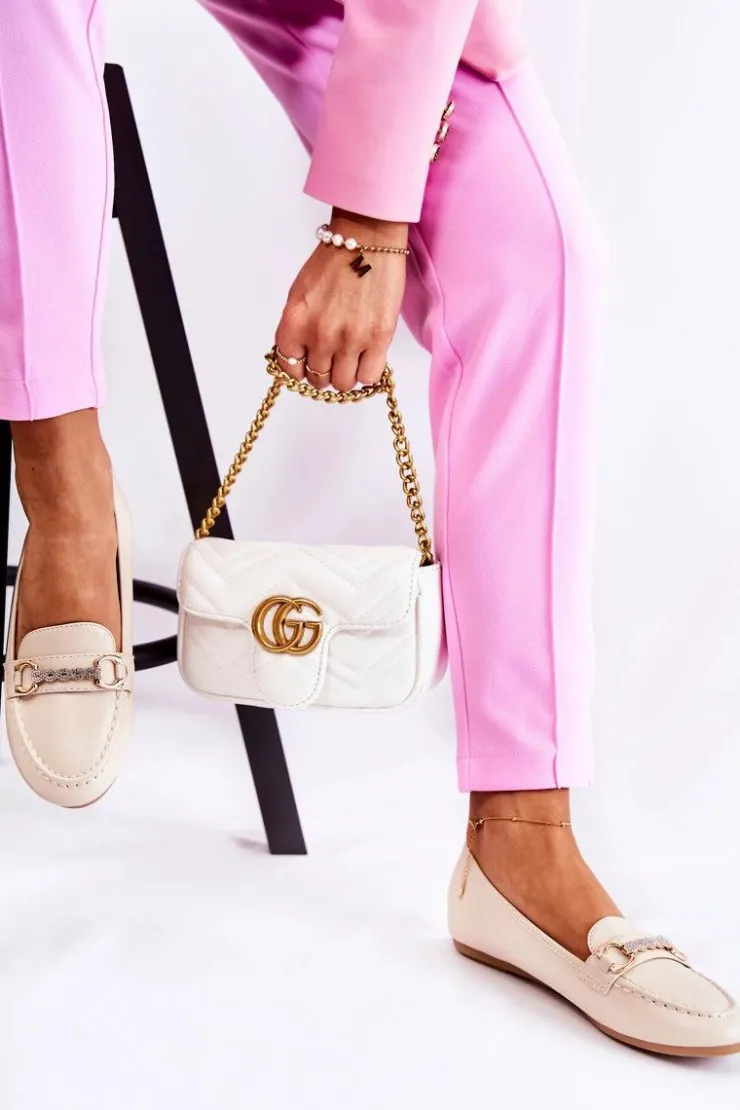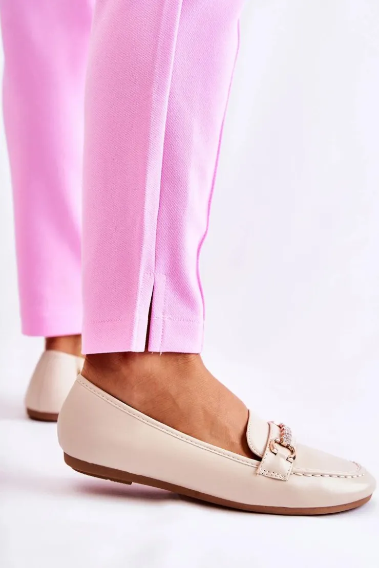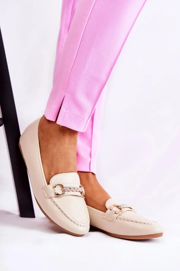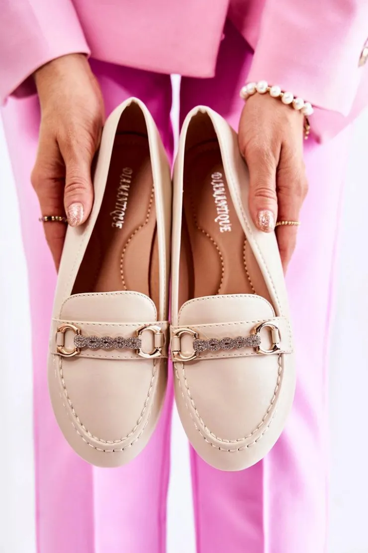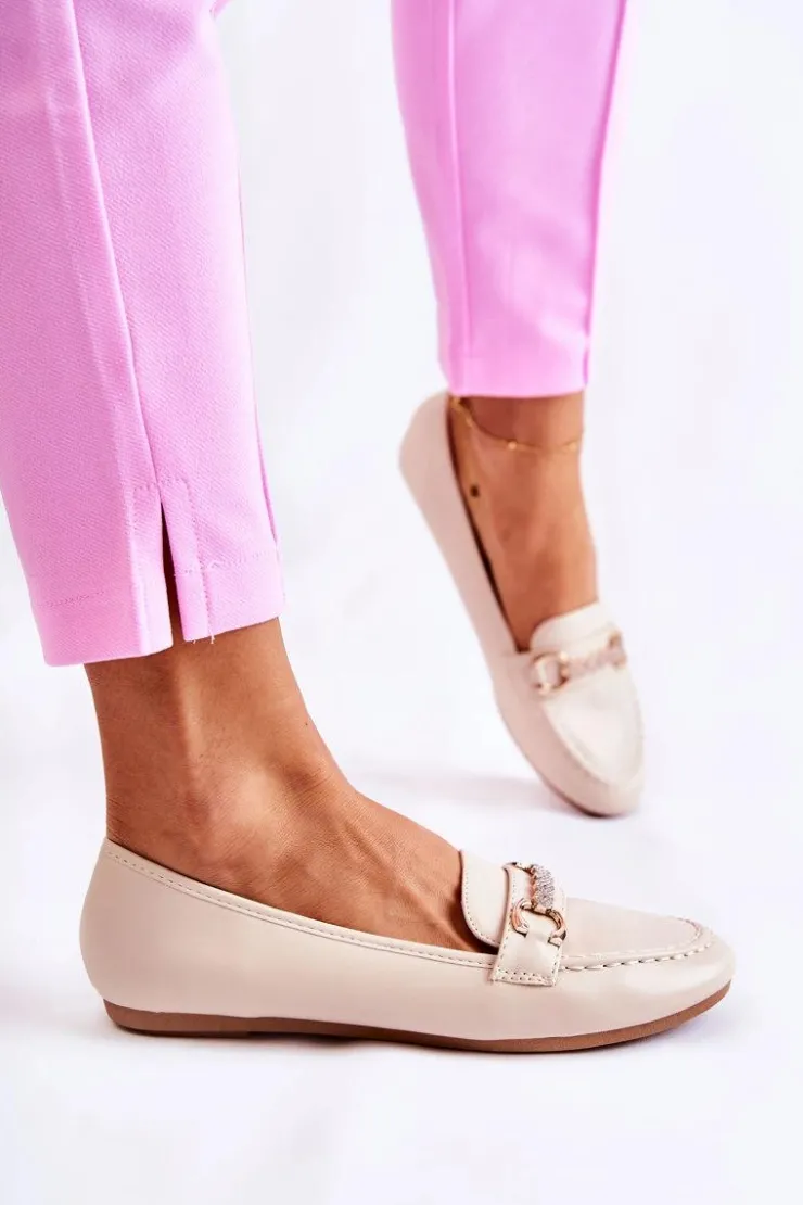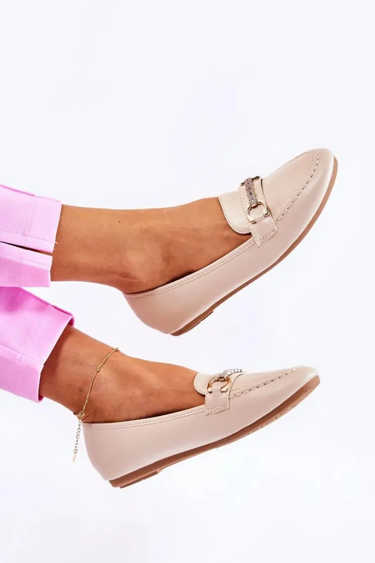 Eleganckie mokasyny osadzone na płaskim obcasie. Zostały wykonane z wysokiej jakości eko skóry z dbałością o każdy detal. Miękka wkładka z perforacją zadba o Twój komfort podczas użytkowania. Mokasyny sprawdzą się w wielu stylizacjach. Na przodzie znajduje się ozdobny element z dżetami imitującymi cyrkonie. Nosek zaokrąglony. Przy wyborze rozmiaru prosimy sugerować się tabelą rozmiarów.