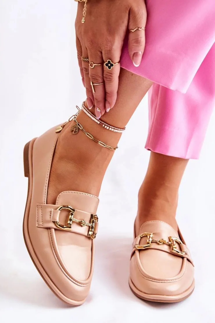 Modne mokasyny damskie świetnie sprawdzą się w sezonie wiosenno-letnim! Model ten wykorzystasz w wielu sytuacjach – do pracy, na spotkanie z przyjaciółmi czy na spacer. Miękka wkładka z eko skóry zadba o Twój komfort podczas użytkowania. Na przodzie znajduje się ozdobny element wykonany z tworzywa sztucznego. Nosek zaokrąglony. Buty osadzone na płaskim obcasie. Przy wyborze rozmiaru prosimy sugerować się tabelą rozmiarów.