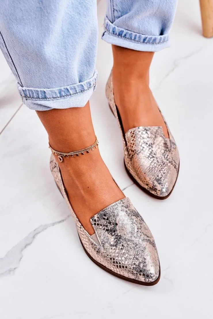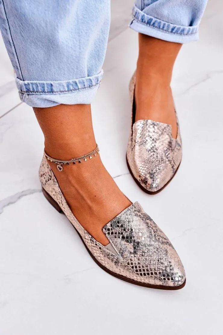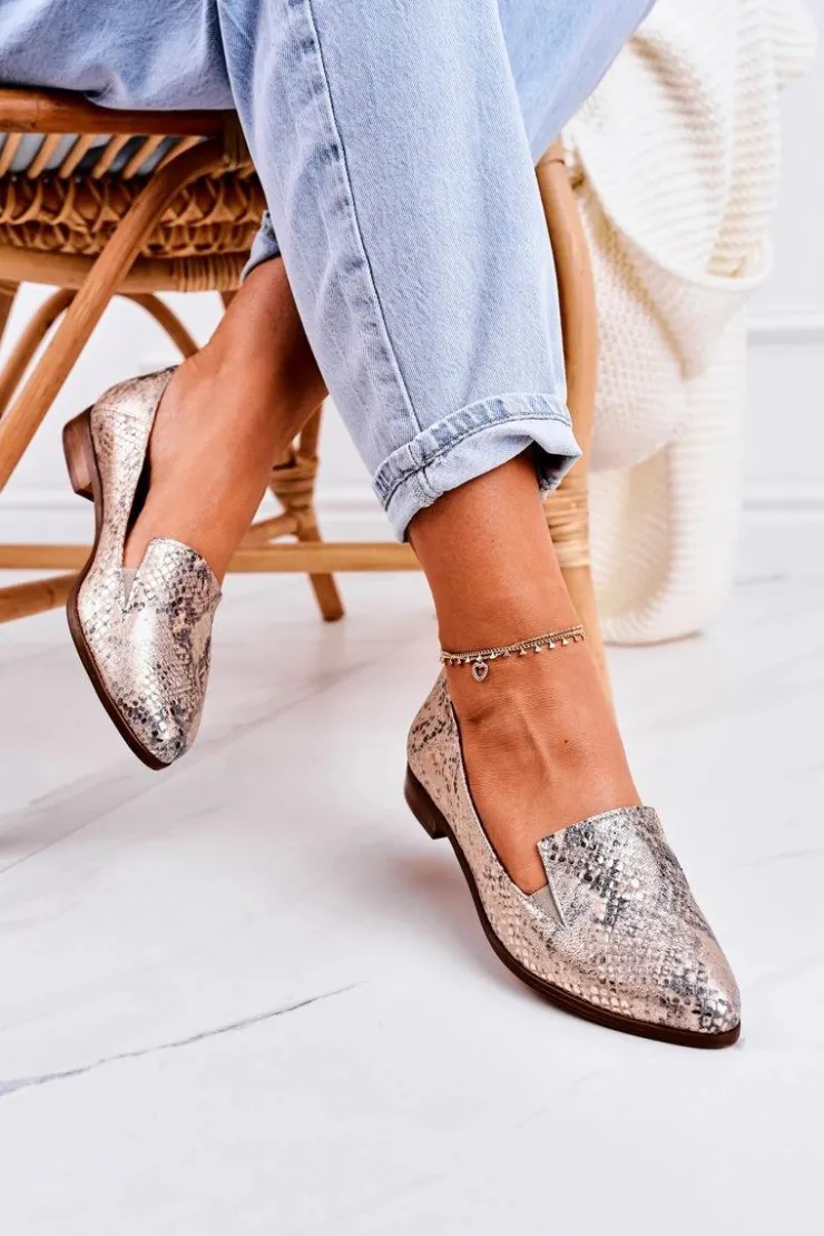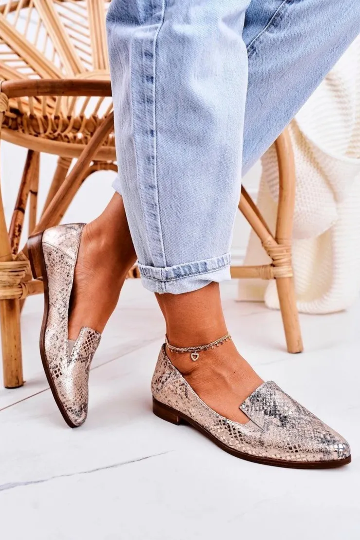 Boto Mokasyny Damskie Skórzane*Damskie Skórzane Mokasyny Wzór Zwierzęcy Złote Scarlett