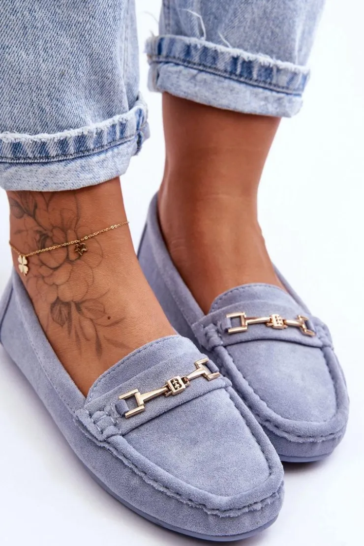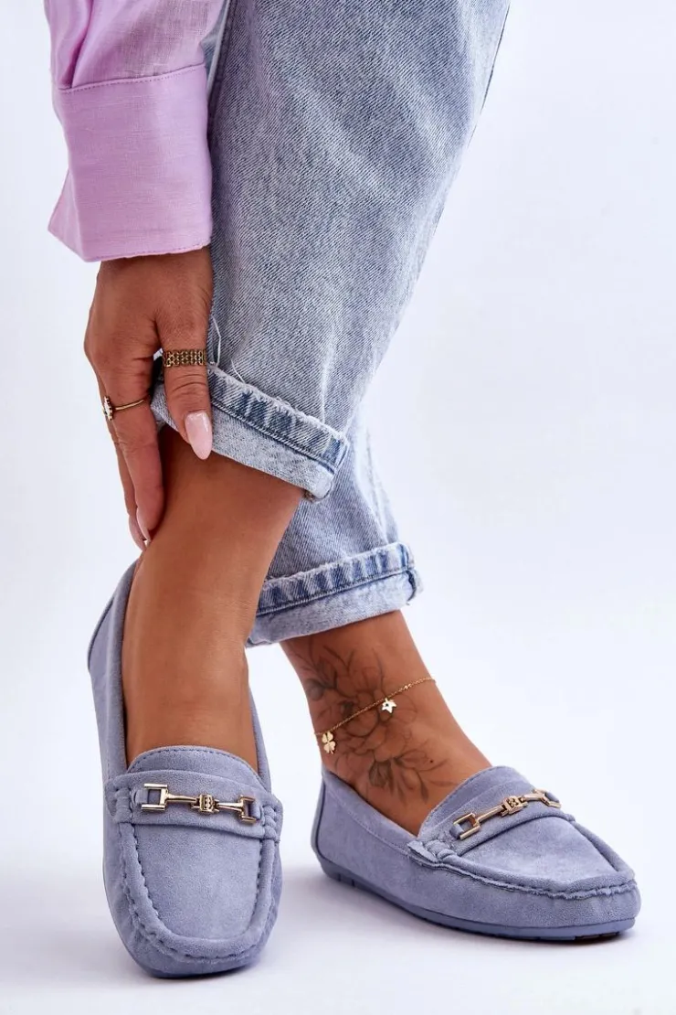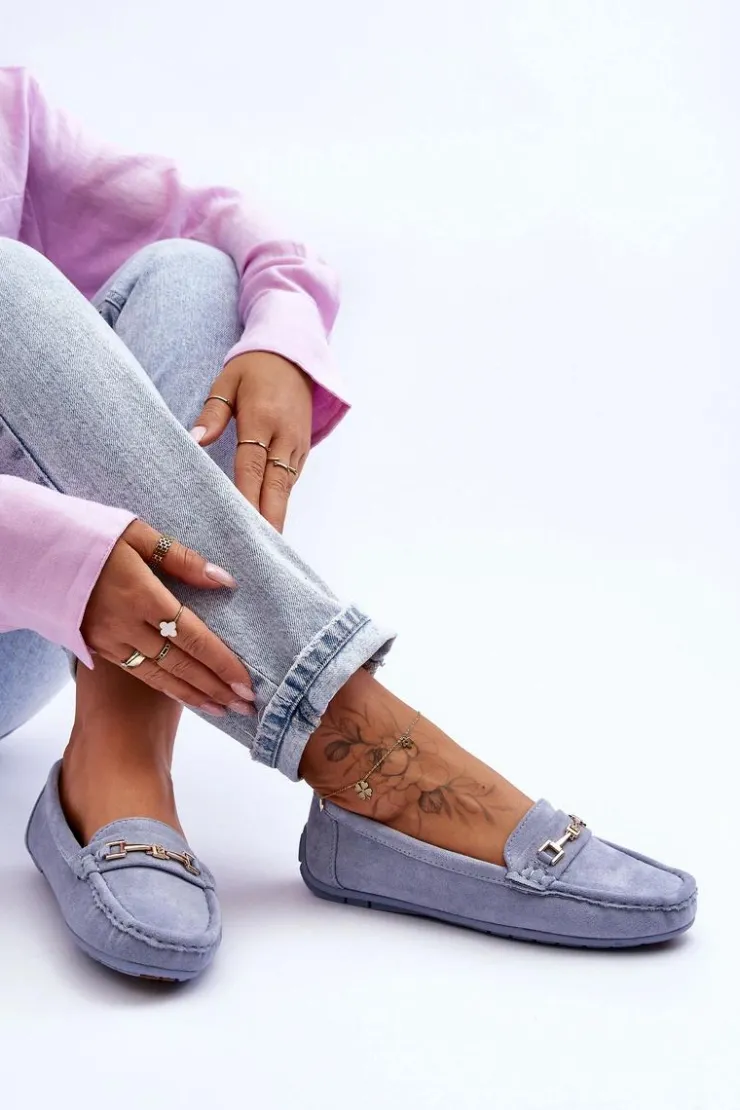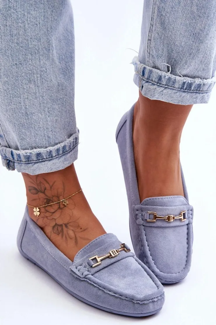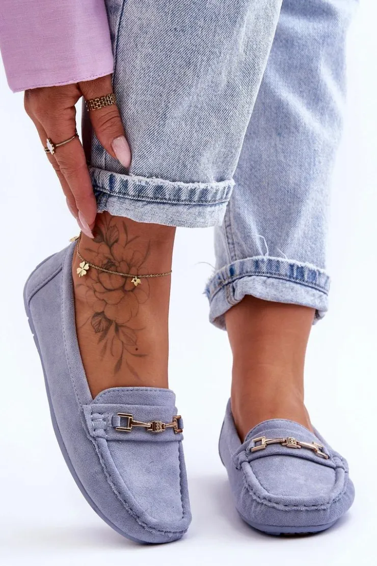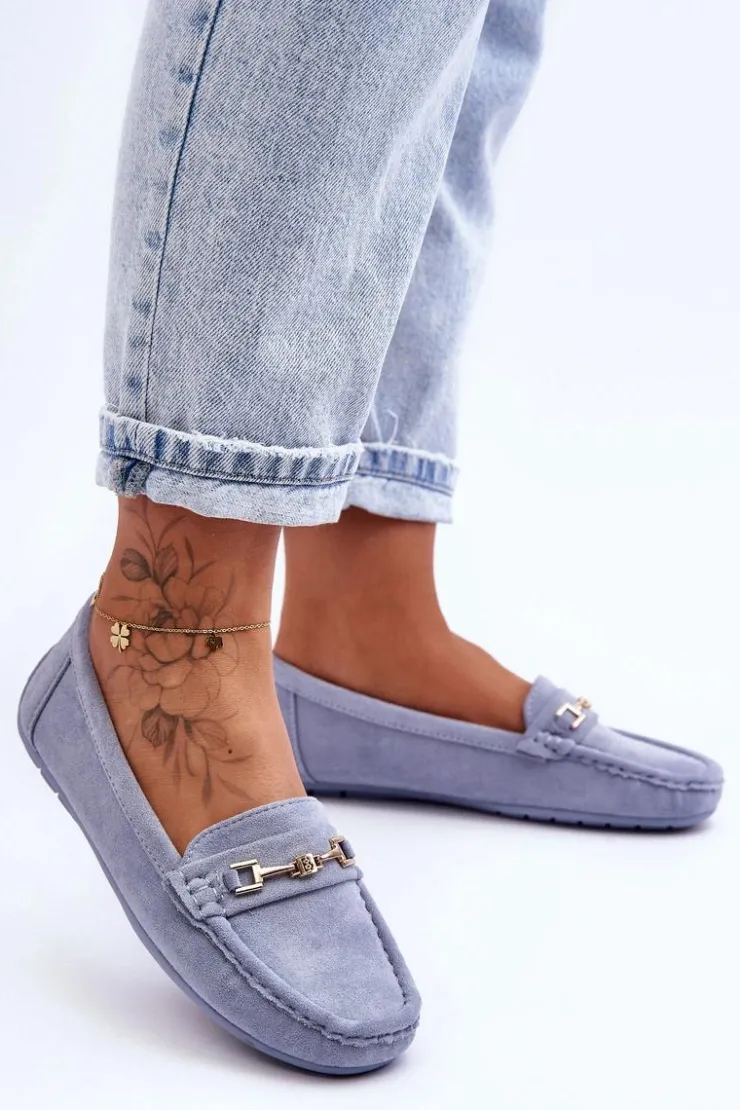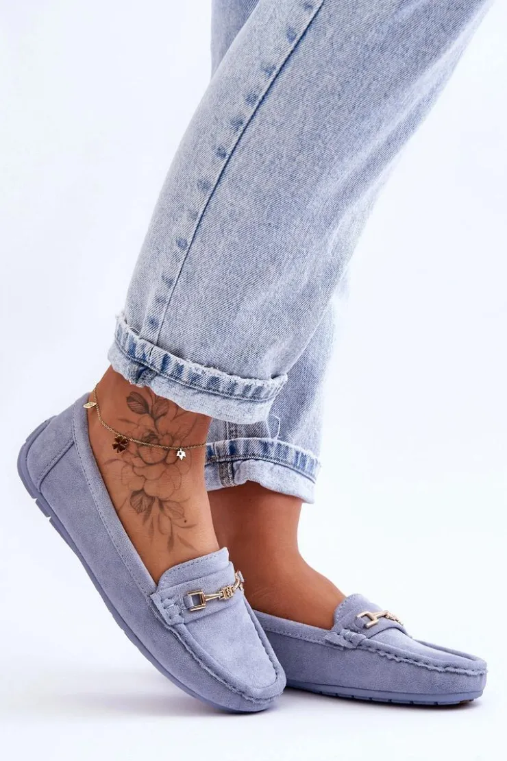 Damskie mokasyny są idealne na wiele okazji! Zostały wykonane z miłego w dotyku eko zamszu. Model ten posiada na przodzie ozdobę z tworzywa sztucznego. Mokasyny osadzono na antypoślizgowej podeszwie. Miękka wkładka z eko skóry zapewni komfort podczas użytkowania obuwia. Dodatkowo jest delikatnie perforowana. Przy wyborze rozmiaru prosimy sugerować się tabelą rozmiarów.