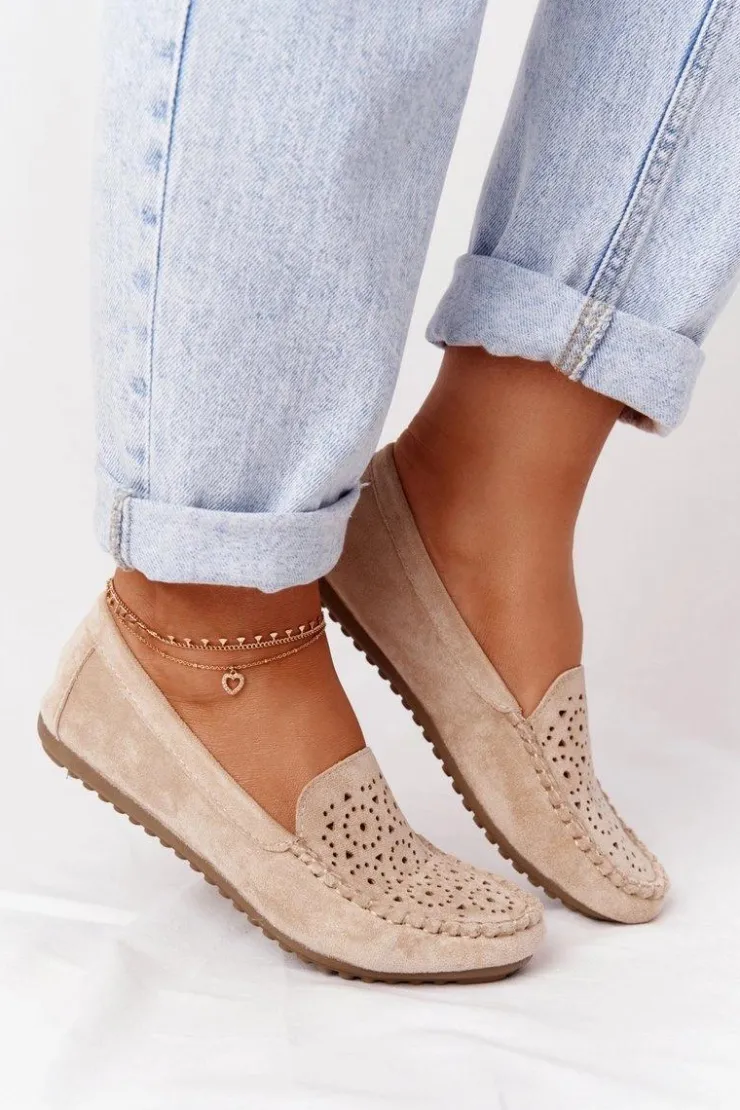 Klasyczne mokasyny damskie wykonane z miękkiego eko zamszu z dbałością o detale. Profilowana wkładka z eko skóry oraz antypoślizgowa podeszwa zapewnią maksymalną wygodę. Ponadczasowy model dostępny jest w wielu pięknych kolorach! Przy wyborze rozmiaru prosimy sugerować się tabelą rozmiarów.
