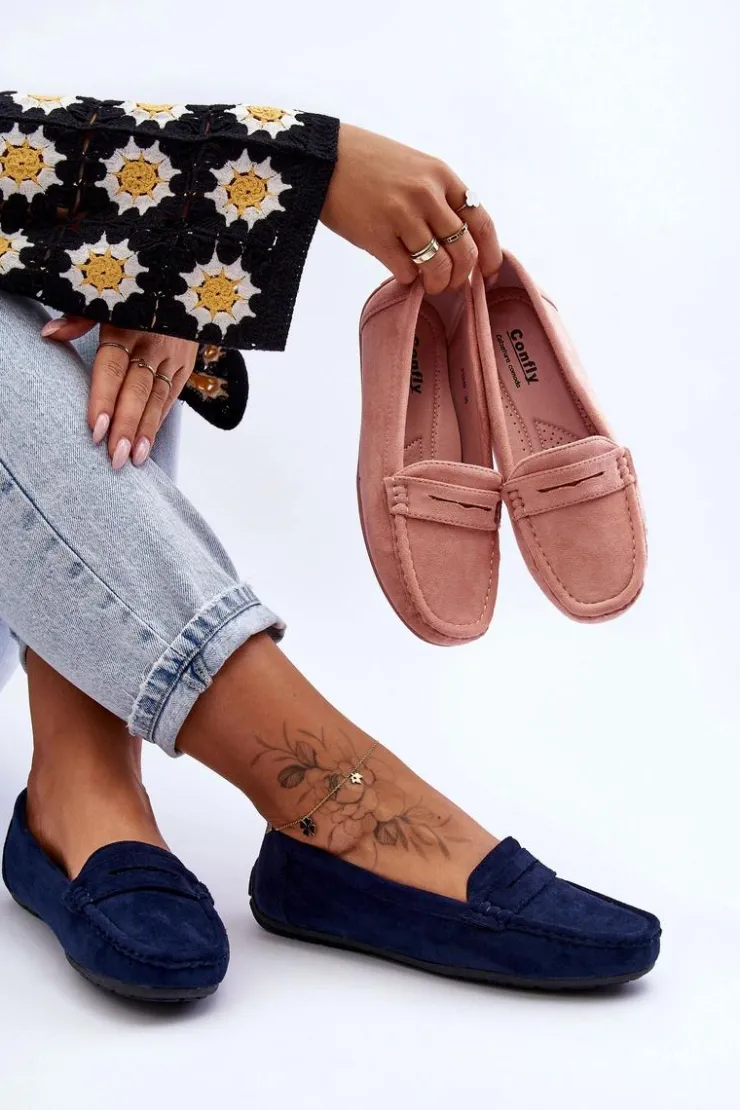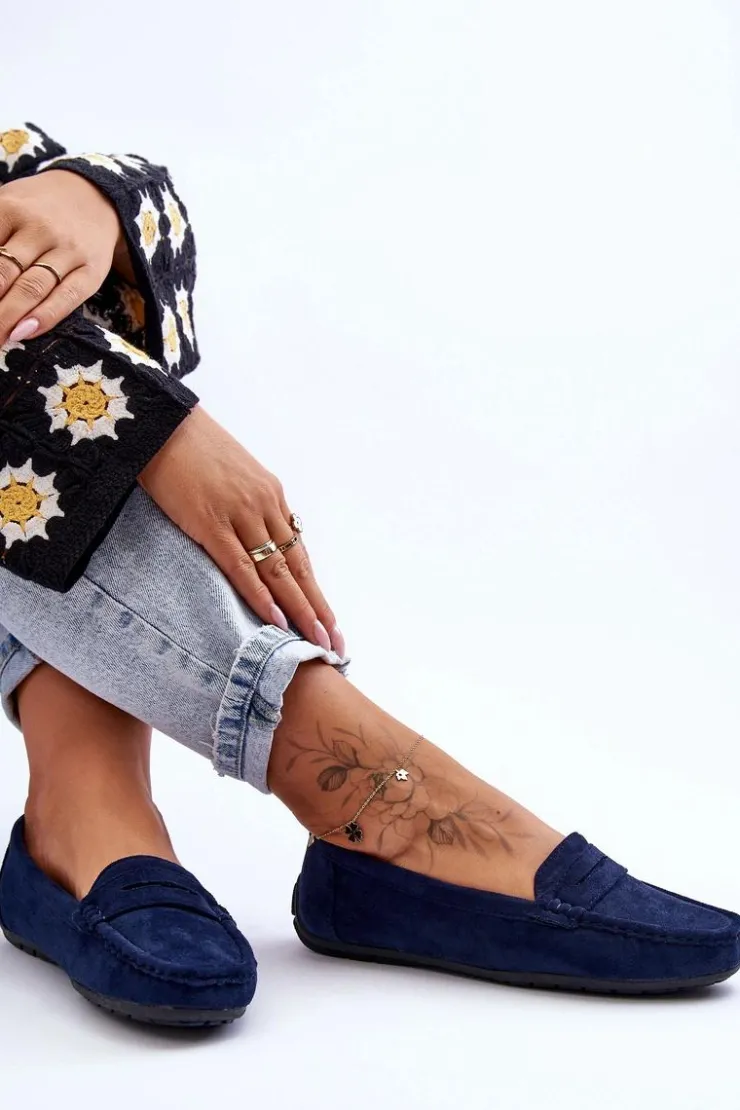Boto Mokasyny Damskie Zamszowe*Damskie Zamszowe Mokasyny Granatowe Lenvie Niebieski