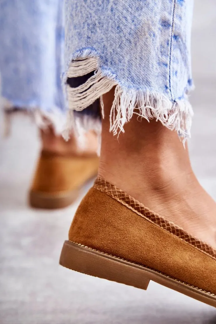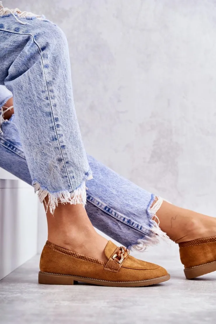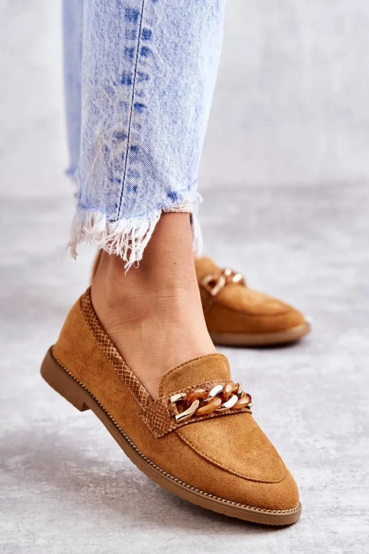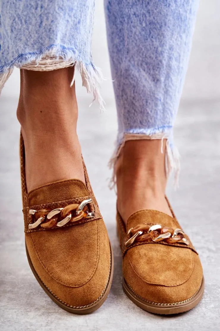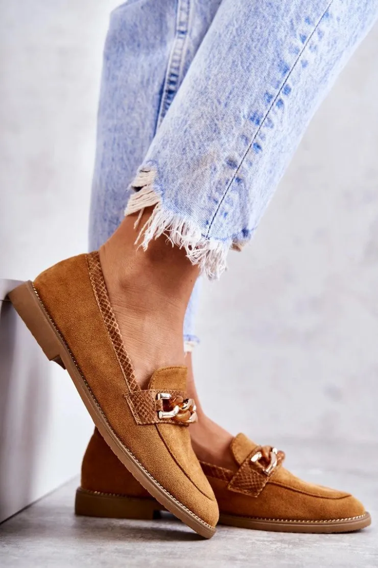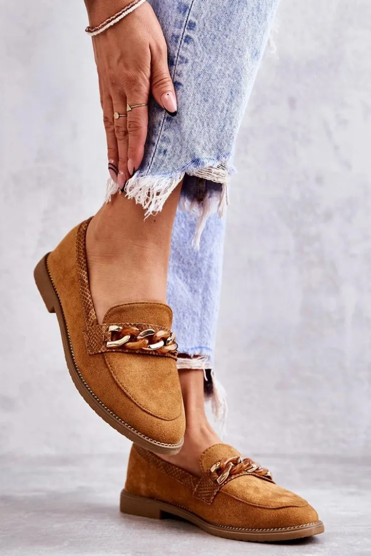 Boto Mokasyny Damskie Zamszowe*Damskie Zamszowe Mokasyny Z Łańcuszkiem Camel Nolie