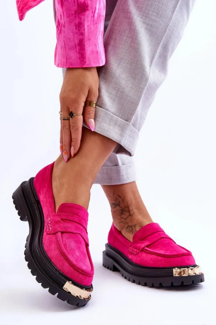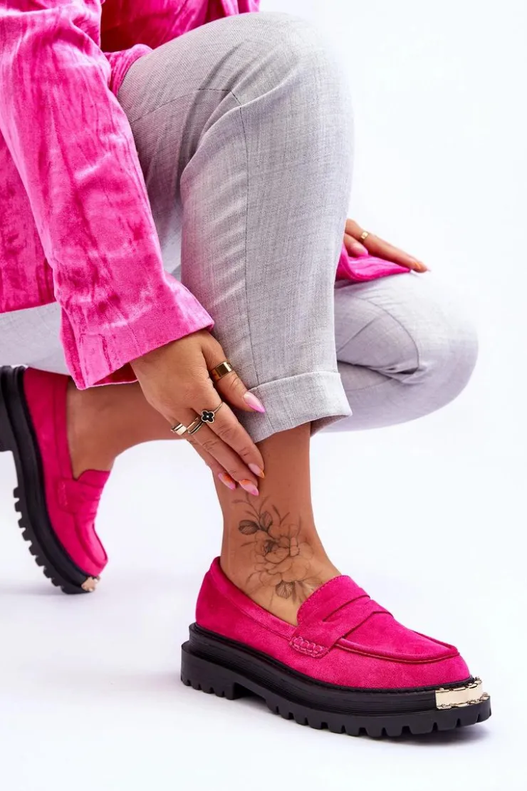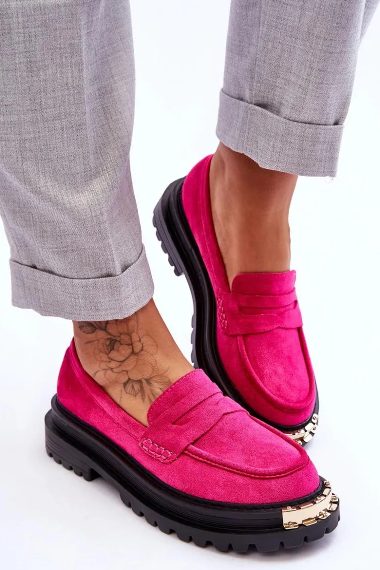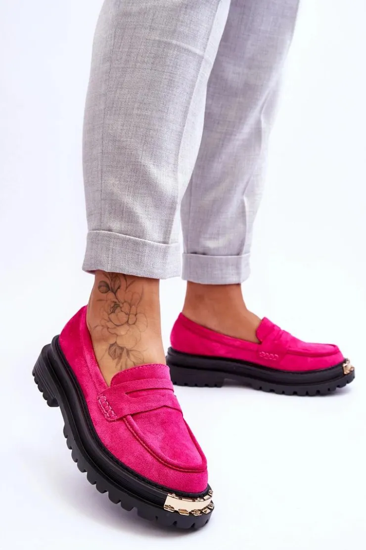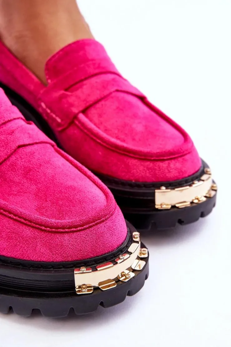 Klasyczne mokasyny zostały wykonane z ekologicznego zamszu. Na przodzie platformy posiadają ozdobne elementy. Osadzone na płaskim obcasie. Podeszwa z tworzywa sztucznego ze żłobieniami świetnie odizoluje od nierównego podłoża. Model wsuwany z usztywnianym zapiętkiem. Koniecznie powinnaś je mieć! Przy wyborze rozmiaru prosimy sugerować się tabelą rozmiarów.